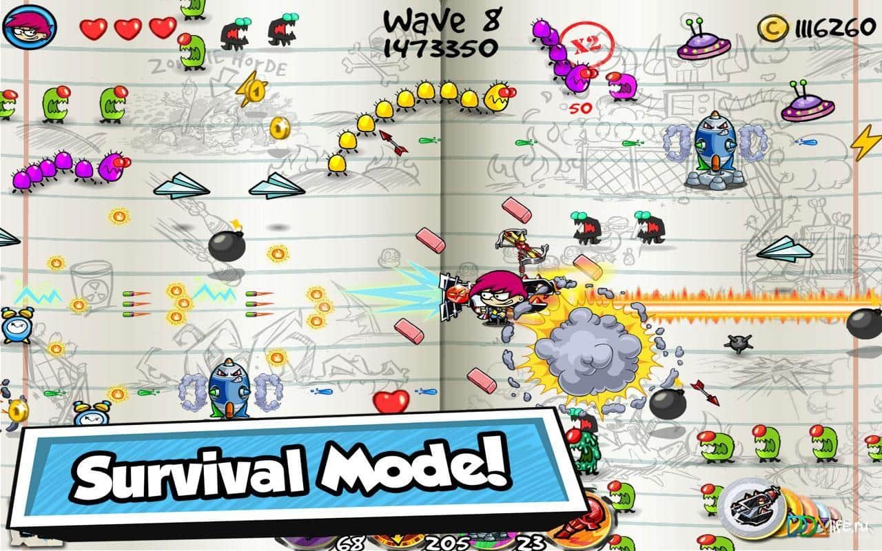 Scribble Hero - игра на аndroid, в которой вам предстоит сражаться с ордами врагов поселившихся в вашей тетради монстров. Отстреливайте монстров из различного оружия, и не дайте им вас сожрать. Путешествуй по безумным мирам от средневековых замков до ледяных пустошей и спасите вашу напарницу от лап страшных монстров.