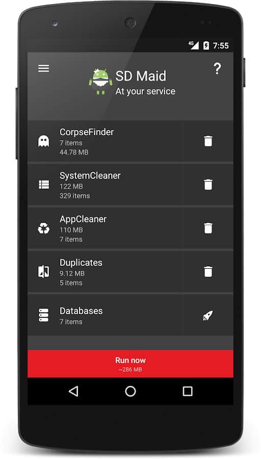 SD Maid - System Cleaning Tool - С помощью этой простой утилиты вы сможете всегда держать ваше устройство в чистоте. Оно содержит целый набор инструментов для управления файлами на вашем устройстве. С его помощью вы не только найдете все ненужные файлы что остались после удаления приложений, но так же и ненужные журналы которые занимают место.