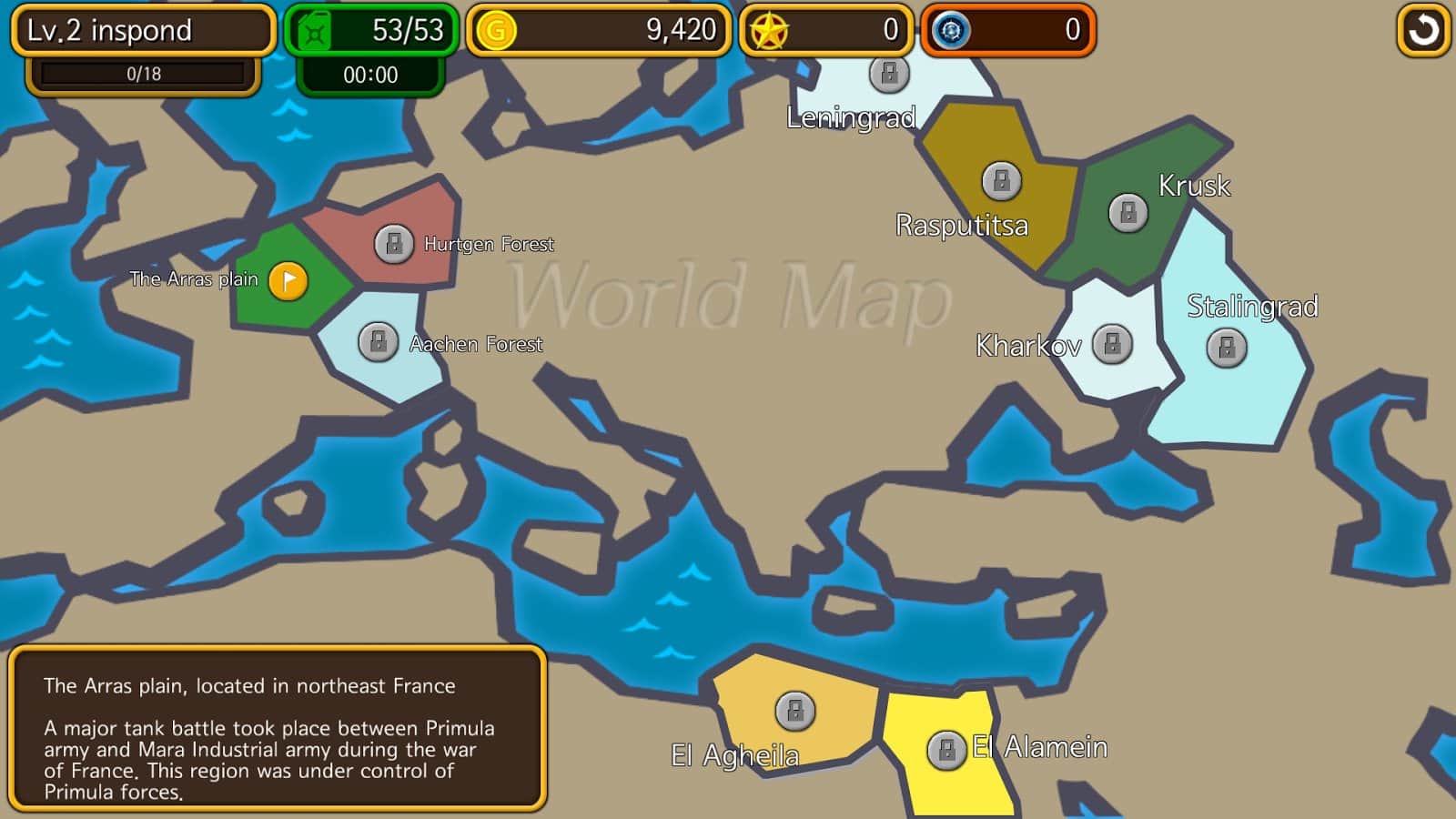 5 своеобразных полей боя, 50 секторов каждых полей боя, и 3 стадии распределены по степени трудности