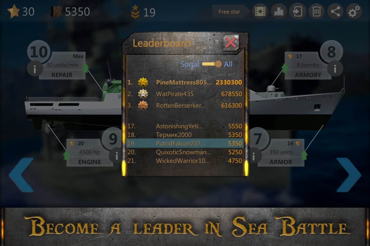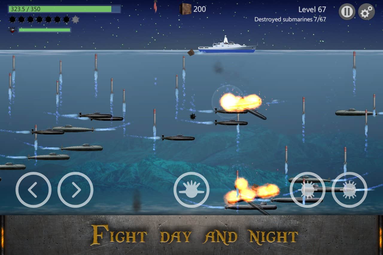 Sea Battle : War Thunder – увлекательная игра на андроид, где вы будете управлять кораблем и уничтожать подводные лодки противника. В этой игре вашей главной задачей будет не дать подводным лодкам уничтожить ваш корабль, а для этого проявите всю свою маневренность и отличную реакцию. Сбрасывайте мины и собирайте максимальное количество сундуков, которые позволят вам улучшить пять параметров корабля: появится шанс стать быстрее, увеличить прочность корабля, усилить вооружение и ускорить самовосстановление корабля. Играйте в любое свободное время и весело проводите его. Главными особенностями игры является – 4 вида подлодок, смена времени суток и неограниченное число уровней.