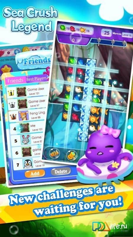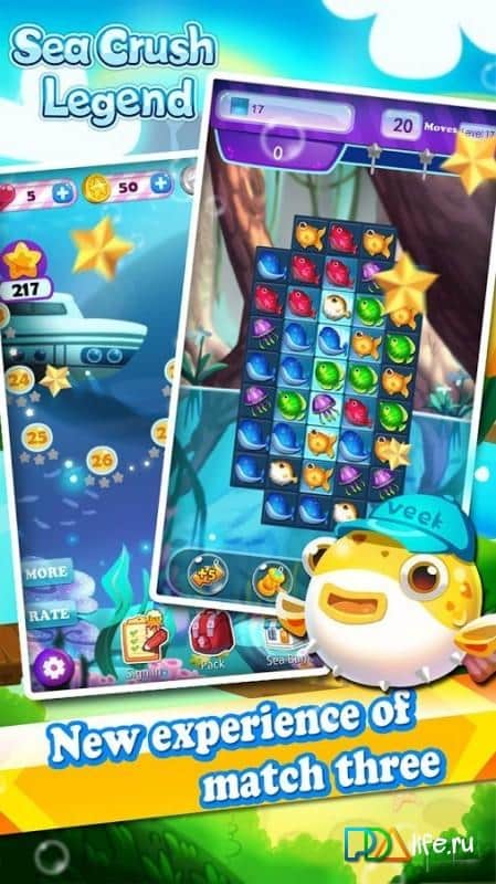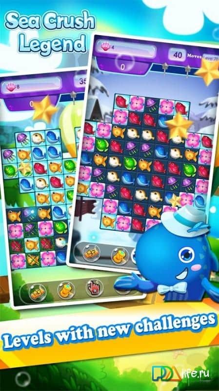 Sea Crush Legend – игра из жанра три в ряд, где вам предстоит отправиться в красивый подводный мир. В этой игре вы окажитесь на морском дне, где обитают тропические рыбки. Составляйте по три и более одинаковых рыбок в ряд и зарабатывайте очки. Каждый новый уровень порадует вас разнообразными рыбками, неповторяющимися миссиями и красивыми местами. Старайтесь составить максимально длинные ряды из рыбок, чтобы заработать дополнительные очки и проделать комбо удар. Получайте бонусы и с помощью них проходите быстрее уровни. Соревнуйтесь с друзьями за первые места в таблице лидеров.