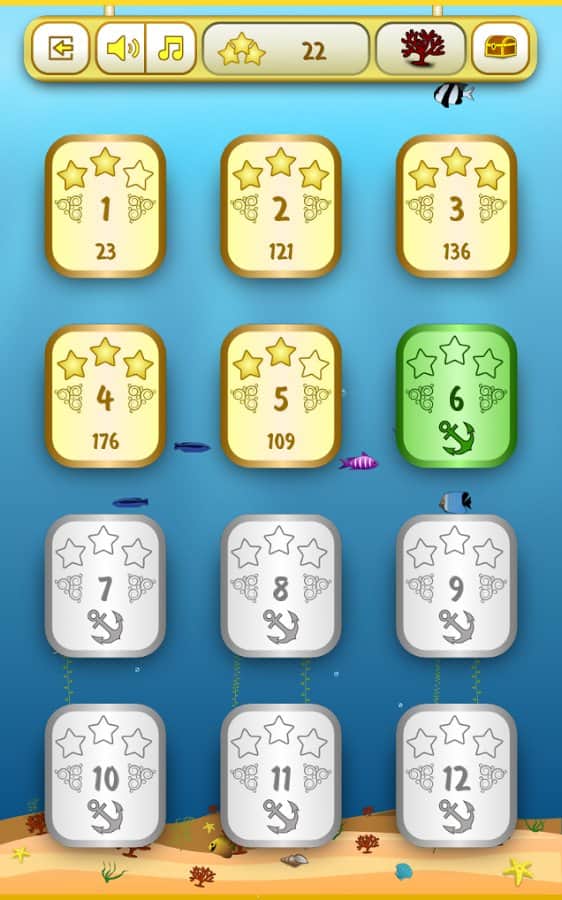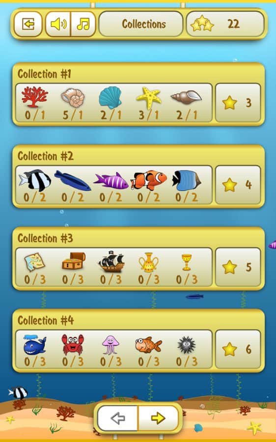 Sea deeps - 3 match – увлекательная игра головоломка на андроид, которая перенесет вас на морское дно. В этой игре перед вами откроется поле, которое поделено на несколько прямоугольников на каждой вершине треугольника находится фишка с изображением морских обитателей. Вашей задачей в этой игре будет составить фишки так, чтобы получилось три одинаковых и тогда они исчезнут. Составляйте как можно больше одинаковых по типу фишек и зарабатывайте очки и бонусы, которые помогут вам пройти более сложные уровни. Соберите все сокровища, которые скрывают морские глубины, и насладитесь оригинальным процессом игры.