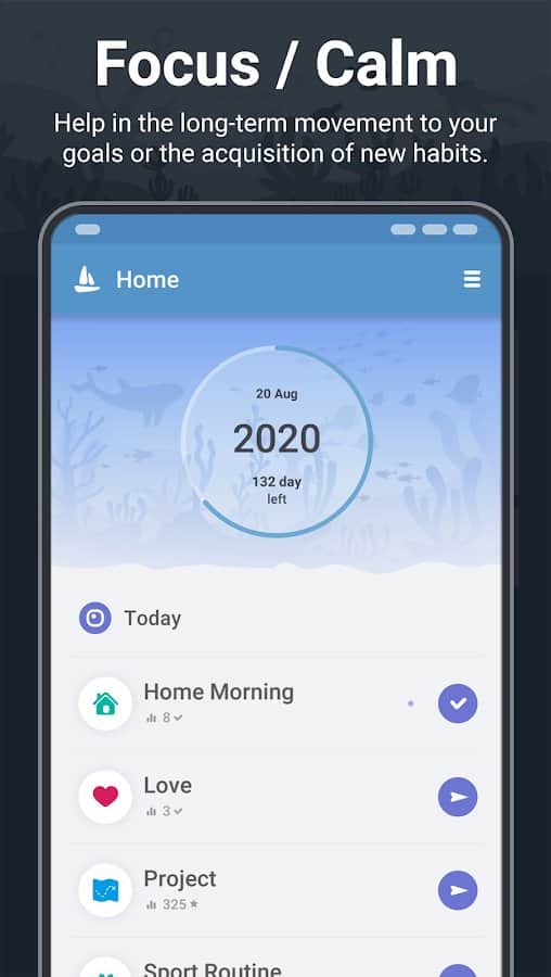 Sea Todo: Stay Focused - минималистичный, но при этом полнофункциональный помощник для долгосрочного и спокойного движения к вашим целям, или приобретению новых привычек. Вы можете создавать долгосроные задачи или привычки, и отмечать прогресс в дни их выполнения. Для каждой задачи динамически рассчитывается дата окончания. Каждый день можно оценить по степени спокойствия. Во время использования календаря у вас появится возможность наглядно увидеть насколько спокойно и качественно все получается.