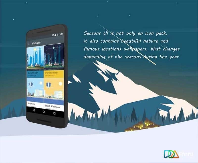 Seasons UI - Уникальный набор иконок, на все сезоны. Здесь вы найдете то что вам по душе. Меняйте тематику своего рабочего стола, вместе со временем года. Если вам надоест зима, сделайте для себя лето. Приложение очень простое, но имеет в себе множество различных иконок, самого лучшего качества. Устанавливайте, и убеждайтесь сами. Так же, вы сможете не только выбрать, из уже существующих комплектов иконок, но и создать свой собственный комплект иконок, в который можете добавить все что хотите, из разных наборов. Данное приложение поддерживается на всех новых лаунчерах, что так же делает его уникальным.