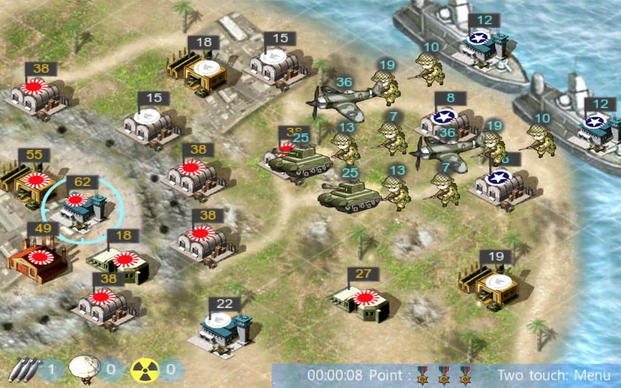 Примите участие в военных действиях, разворачивающихся в годы Второй мировой войне вместе со стратегией реального времени - Second World War. Ваша задача - захватить нейтральные военные базы, чтобы увеличить свою мощь, а также завоевать вражеские базы, которые неплохо охраняются. И если нейтральные вам достанутся почти даром, главное успеть раньше противника, то с базами врага придется попотеть! Для того, чтобы одержать победу, нужно направить максимально мощный удар по противнику. Имейте в виду, что каждое здание имеет определенное число возможных бойцов, а также заданную скорость строительства. Все станет ясно лишь после того, как вы попробуете все в деле и поймете, что и когда надо строить. Вашему вниманию 3 режима и 66 стадий. За победу в каждой стадии вы получаете очки. Их можно потратить на покупку навыков. Игра очень захватывающая, динамичная и с приличной графикой. Так что скачайте Second World War для android и изучите все особенности ведения военных действий!