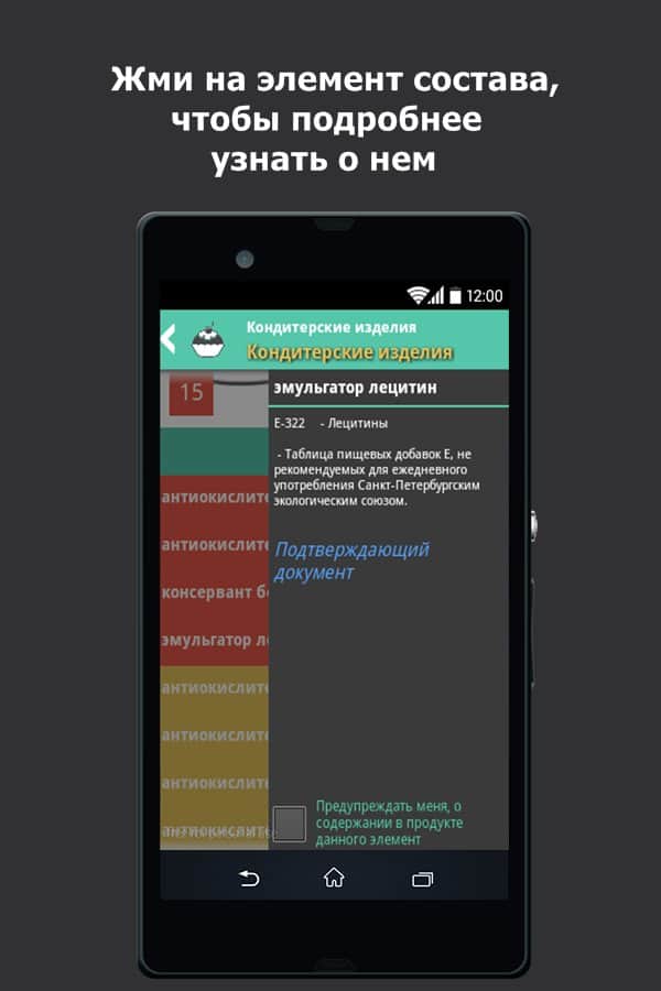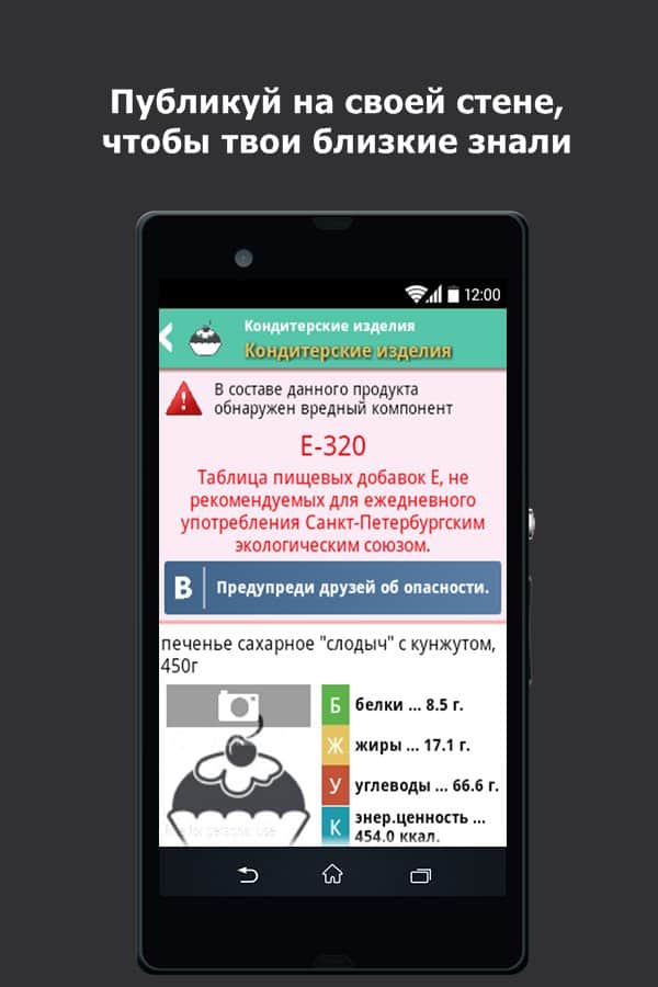Съедобно - Узнай что ты ешь – данное приложение будет весьма кстати всем, кто ведет здоровый образ жизни и следит не только за своим питанием, но и питанием близких. С его помощью вы легко узнаете о: составе продукта, содержании вредных пищевых добавок, химическом составе и энергетической ценности. Просканировав штрих-код товара, программа выдаст вам результат анализа по заявленным возможностям. Если по каким-либо причинам вы хотите знать, не входит ли определенный компонент в состав продукции, вы должны отметить его галочкой "Предупреждать меня о содержании в продукте данного элемента". Будьте здоровы!