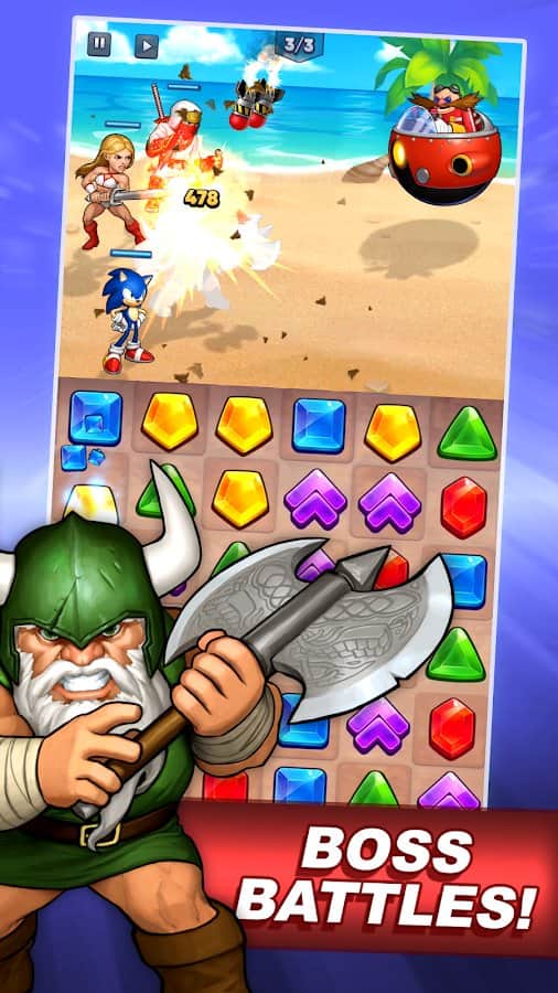 SEGA Heroes - новая РПГ от студии SEGA, геймплей которой сочетает в себе элементы аркадной головоломки из серии три в ряд и механику экшен ролевки. В данном проекте вам предстоит собрать под своим командованием всех знаменитых персонажей из игр выпущенных данным разработчиком и затем принять участие в захватывающих сражениях. Конечно же не обошлось без системы развития и прокачки, так что вы сможете придать знакомым персонажам новые способности и возможности, а затем испытать их в бою.