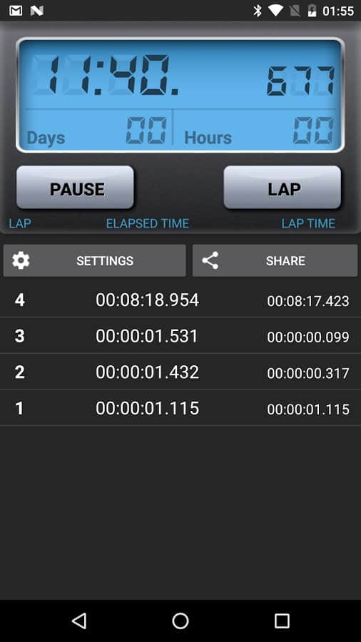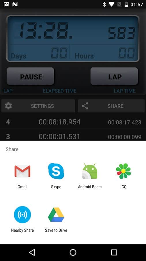Секундомер для андроид - простая и удобная программа для Андроид. Приложение продолжает работу даже после перезагрузки устройства, а так же позволяет измерять значение с точностью до миллисекунд.