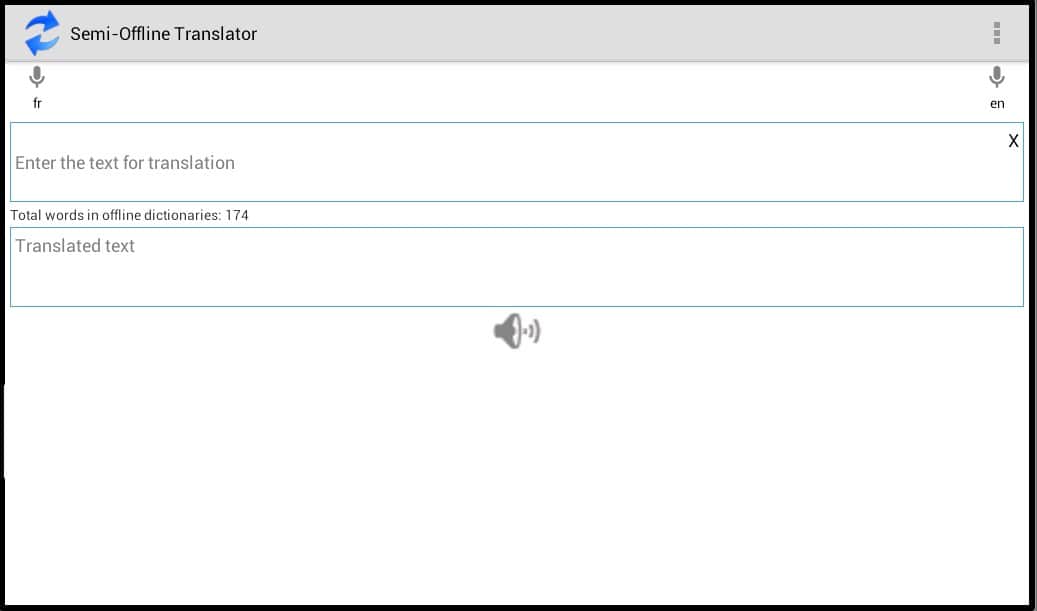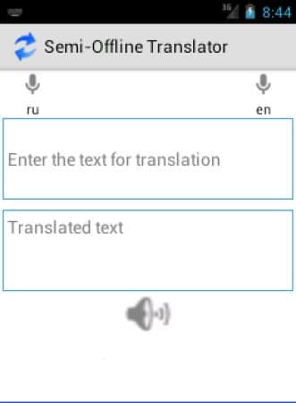 Semi-Offline Translator – уникальный онлайн переводчик, который постоянно создаёт свою оффлайн базу слов, для того чтобы в дальнейшем пользователь мог переводить слова даже не имея под рукой интернета. По мимо всего прочего приложение обладает такой функцией как «ввод текста при помощи вашего голоса». Это позволяет общаться на разных языках. Для более точного распознания речи произношение должно быть точным и внятным. Перевод происходит с помощью специального онлайн сервиса и после этого записывается на устройство, поэтому при отсутствии интернета словарь будет пользоваться накопившейся внутренней базой.