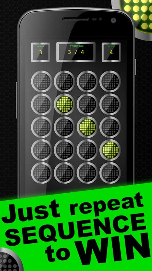 SEQUENCE – увлекательная головоломка на андроид, где вам предстоит повторять последовательность. В этой игре с мнималистичной графикой вам предстоит запоминать определенную последовательность и повторять ее на игровом поле. Перед вами окажутся круги с цветом вам необходимо запомнить их последовательность за малый промежуток времени. Тренируйте свою зрительную память и логику в этой игре и проходите один за другим уровни. С каждым новым уровнем сложность игры будет увеличиваться и вам придется изрядно потрудиться, чтобы пройти их. Набирайте очки и соревнуйтесь с другими игроками за лучшие результаты.