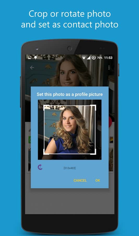 При помощи приложения Set Contact Photo можно за пару кликов найти, синхронизировать фото из менеджеров и социальных сетей и установить его на контакт.