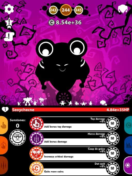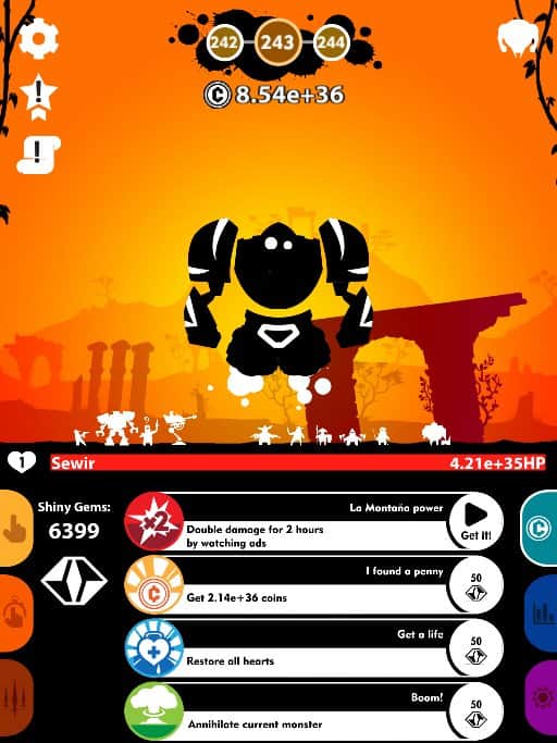 Shadow Clicker – кликер на андроид, где вам предстоит спасти мир от разрушения. В наш мир пришли монстры, которые попали сюда из потустороннего портала и только вы в стоянии дать отпор врагам. Кликайте как можно чаще по экрану своего девайса и уничтожайте монстров, собирайте монетки после уничтожения врага и нанимайте на них помощника, которые будут помогать вам бороться с врагами, даже когда вы отсутствуете. Достигните максимального уровня в этой игре путем неимоверных стараний и побеждайте врагов, используя новые силы. Получайте ценные награды, которые достанутся самым терпеливым игрокам и устанавливайте свои рекорды в этой игре. Игра порадует вас разнообразными локациями, многочисленными монстрами и невероятными миссиями.