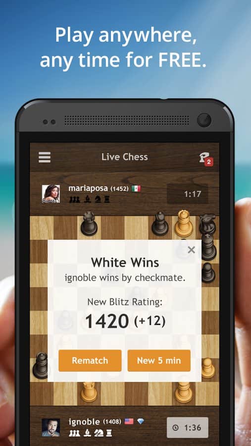 Игра потрясающая, определённо, но всё же советую chess.com так как там можно:
