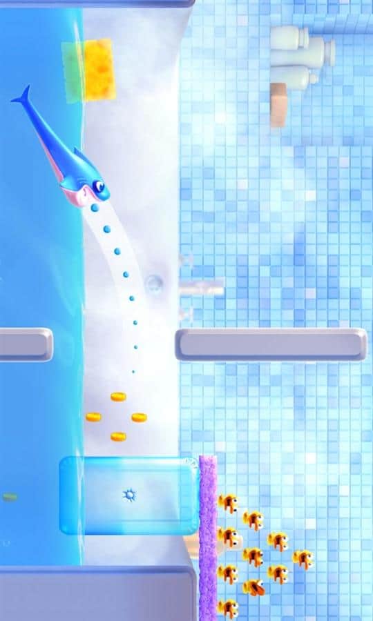 Shark Dash - в этой аркаде-головоломке с элементами физики, по геймплею напоминающую известных Angry Birds, главными героями являются резиновые игрушки ванной комнаты, а именно акула и ее приятели, а также вредные резиновые утята. По сюжету утята-хулиганы нагло вторглись на территорию обитания акул и похитили подружку главного героя, а сами бесцеремонно купаются как ни в чем ни бывало! Это возмутило всех водных обитателей - акулу,рыбу-пилу, рыбу-молот, дайвера и др. Естественно акула будет спасать свою вторую половинку, а для этого нужно съесть как можно больше резиновых утят. Геймплей прост - тяните акулу за хвост и направляете на утят. Всего 96 уровней на 4 локациях, от Японии до Рима, монетки, бонусы и разный облик героя!