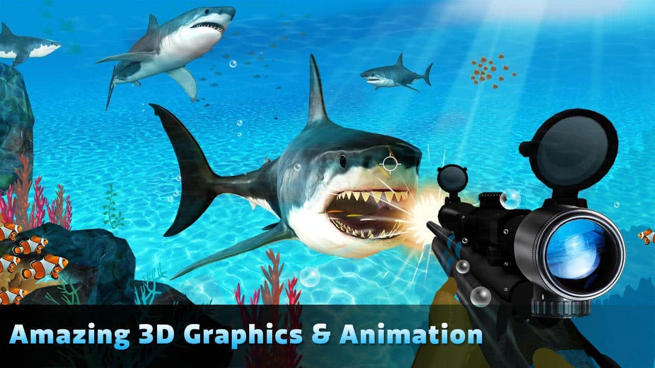 Shark Hunting – игра на андроид, которая погрузит вас в глубины океана, где вы встретитесь лицом к лику с огромными акулами. В этой игре вашей главной задачей будет, используя свою винтовку с оптическим прицелом стрелять по акулам выискивая у них самые уязвимые места. Старайтесь не промахнуться в своего яростного врага, иначе вы потеряете жизни, которых у вас и так не так уж и много. Положитесь на свою меткость и точность в выстрелах и не подпускайте акулу близко к себе иначе вы также лишитесь жизней. Повстречайтесь с самым опасным подводным хищником на планете и выйдите из этой схватки победителем. В игре представлено два режима игры, множество различных акул и красочный подводный мир.