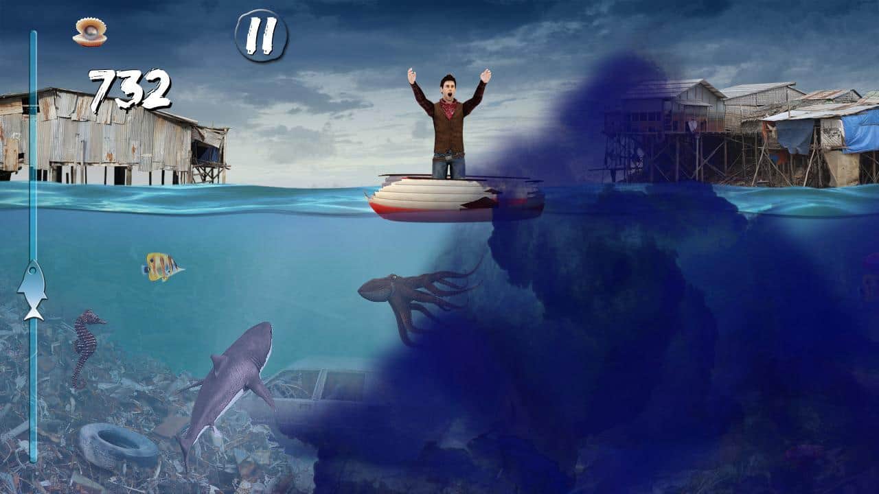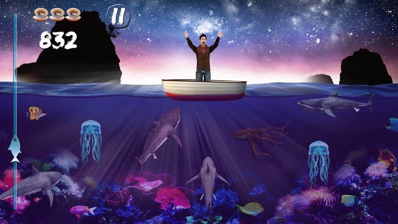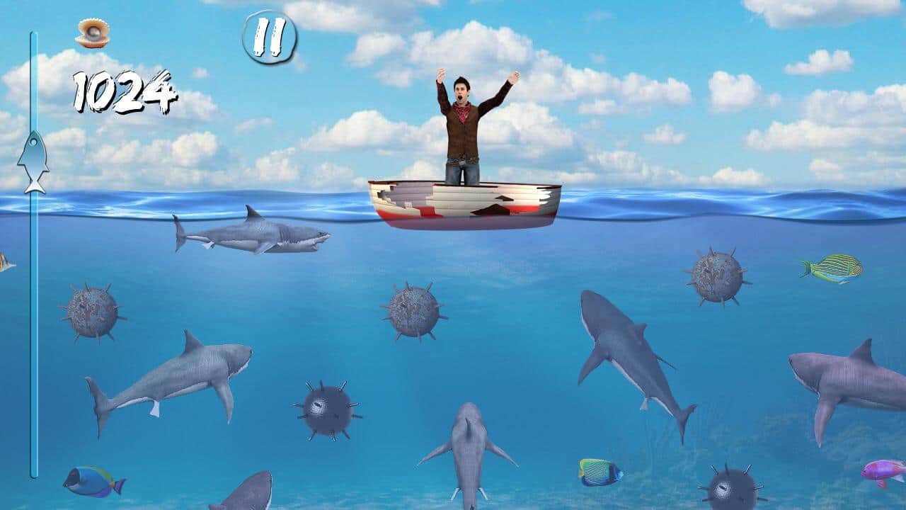 Shark smasher – красочная аркада на андроид, где вам предстоит помогать рыбаку, отбиваться от акул. Наш горе рыбак оказался один на небольшой лодке, которая находиться посреди океана. Все бы было хорошо, если бы не акулы, которые нападают не него со всех стороны и норовят его съесть. Вам предстоит помочь рыбаку выжить, нажимая на приближающихся к лодке акул. Проверьте свою ловкость и внимательность, играя в эту игру и не давая акулам съесть рыбака. Нажимайте на акул, но не трогайте медуз, черепах, мелких рыбок, осьминогов и мин, если вы их коснетесь игра для вас закончиться. Игра порадует вас красочной графикой и разнообразным подводным миром.