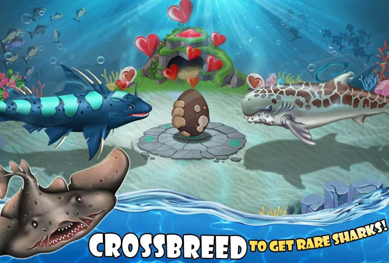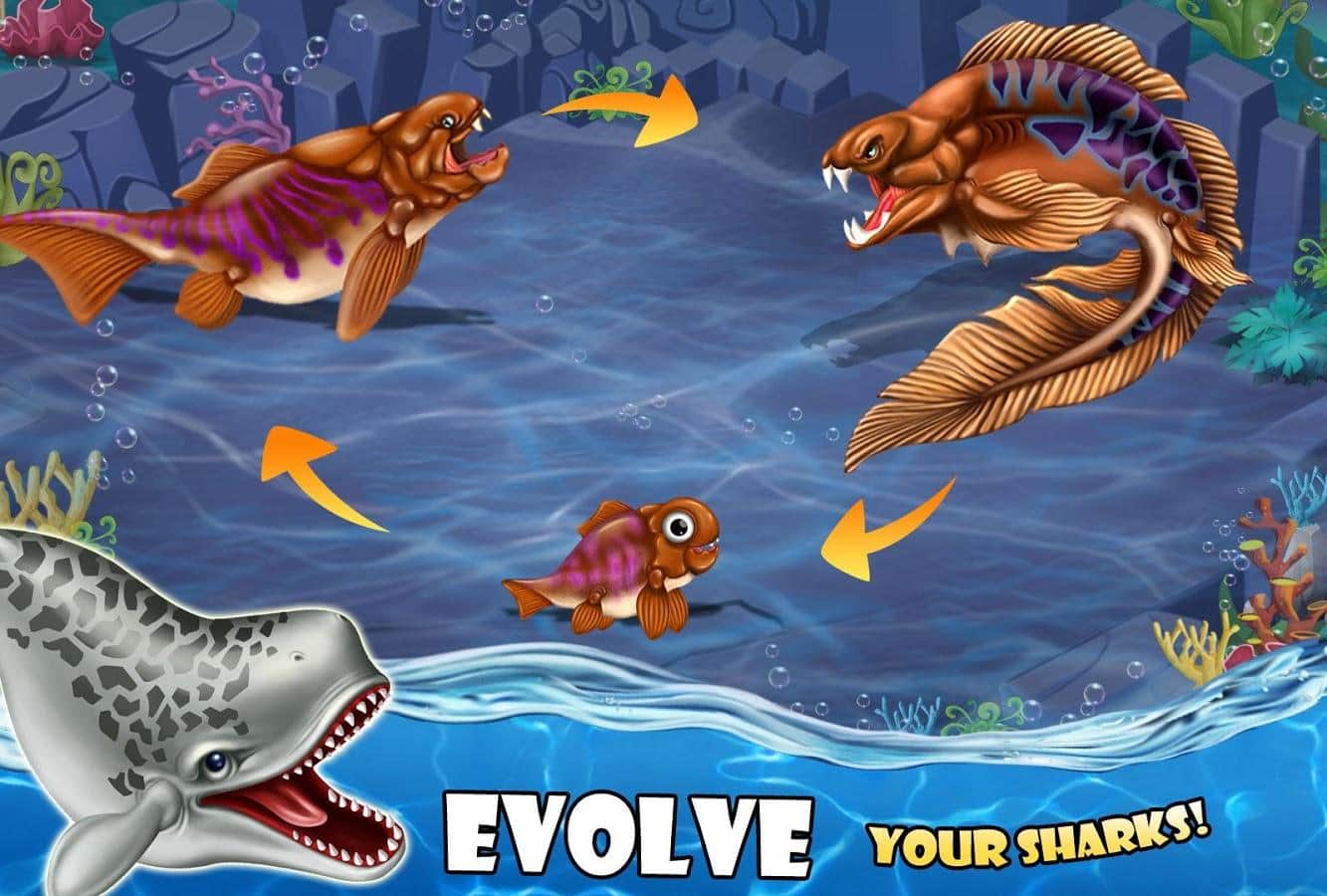 Shark World – откройте для себя увлекательный подводный мир где вы будете управлять акулами. В этой игре вы откроете для себя неповторимый мир акул где сможете управлять различными видами и строить подводные дома. Исследуйте загадочный мир обитателей океана и соберите свою неповторимую коллекцию, которая будет состоять из морских акул, акул-молотов, акул-ангелов и доисторических созданий Мегалодона. Создавайте свои виды акул и наблюдайте за их эволюцией. Бросайте вызов другим акулам и сражайтесь с ними в неравных боях.
