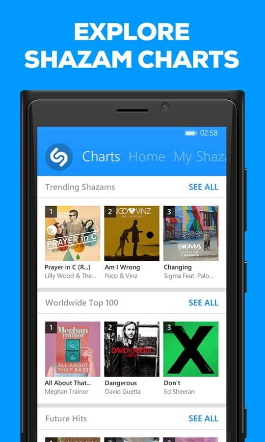 Shazam для windows phone - эта программа позволяет легко и быстро распознать музыку по отдельному отрывку. Кроме информации о названии трека, исполнителе и альбоме, вы получите текст песни, видео и возможность купить понравившуюся музыку. Кроме того, ею можно будет поделиться с друзьями в социальных сетях или по электронной почте.