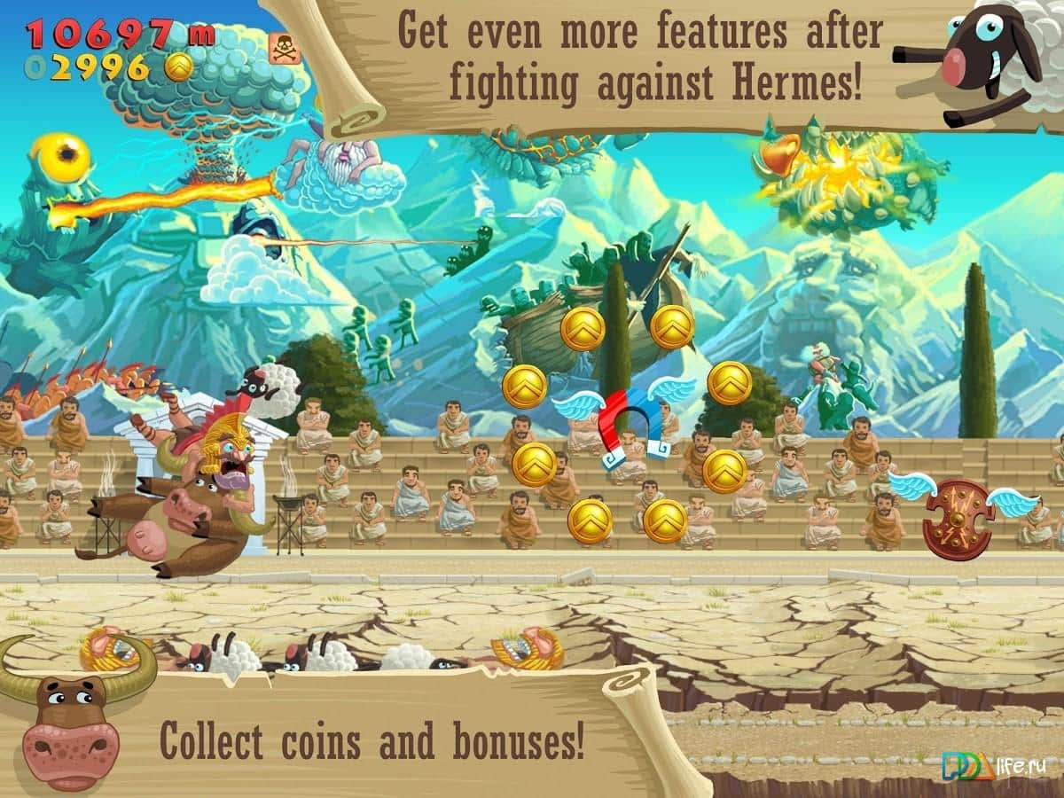Sheep Happens - веселая игра на аndroid, в которой вы будете управлять Гермесом который пытается прибежать к финишу первым. Для этого вам предстоит маневрировать вокруг других бегунов, преодолевать препятствия и летать на овцах. Собирайте монетки, чтобы приобрести на них новые снасти и модные шляпы с разными способностями. Играйте с друзьями в эту увлекательную игру и добивайтесь лучших результатов.
