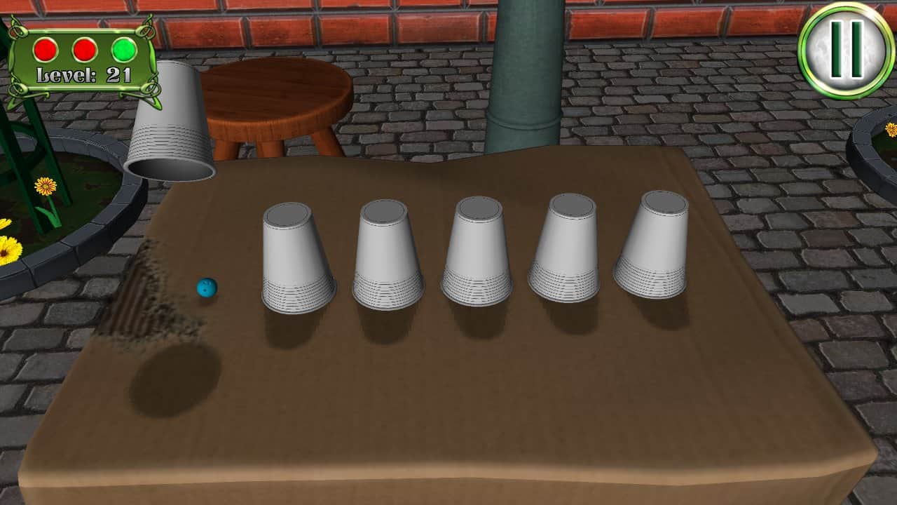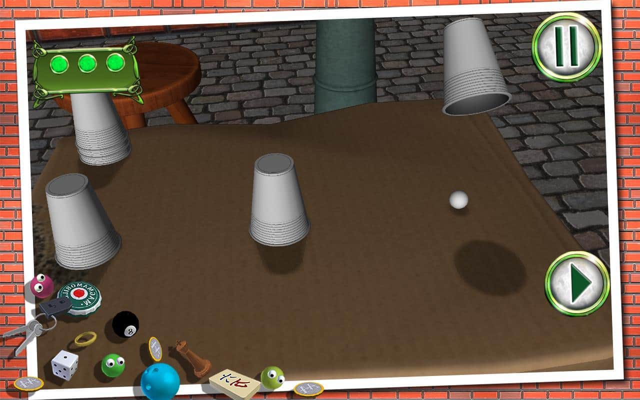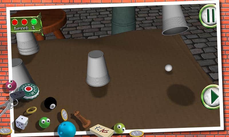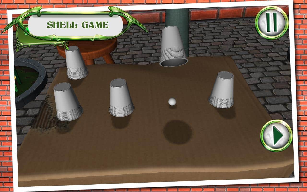 Shell Game - игра наперстки на андроид, в которой вам изрядно предстоит потренировать свои глаза. В эту игру в основном люди играют на улице и на деньги, но теперь у вас выпал шанс сыграть в эту увлекательную игру и определить, в каком из наперстков находиться шарик. Цель игры заключается в следующем, на стол выставляются три или более стаканчиков, в один из них кладется шарик и стаканчики начинают перемещать, запутывая вас. Вашей задачей после всех манипуляций, угадать в каком из стаканчиков находится заветный шарик. С помощью этой игры вы сможете потренировать свои глаза и правильно угадывать стаканчик.