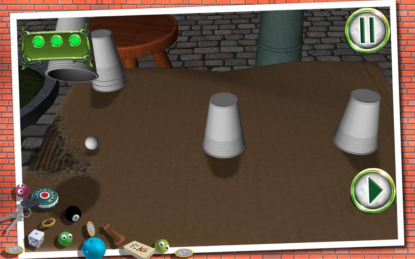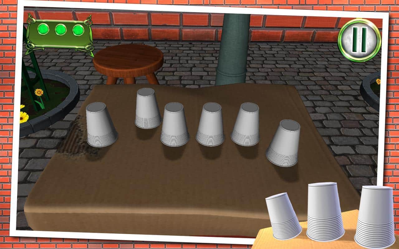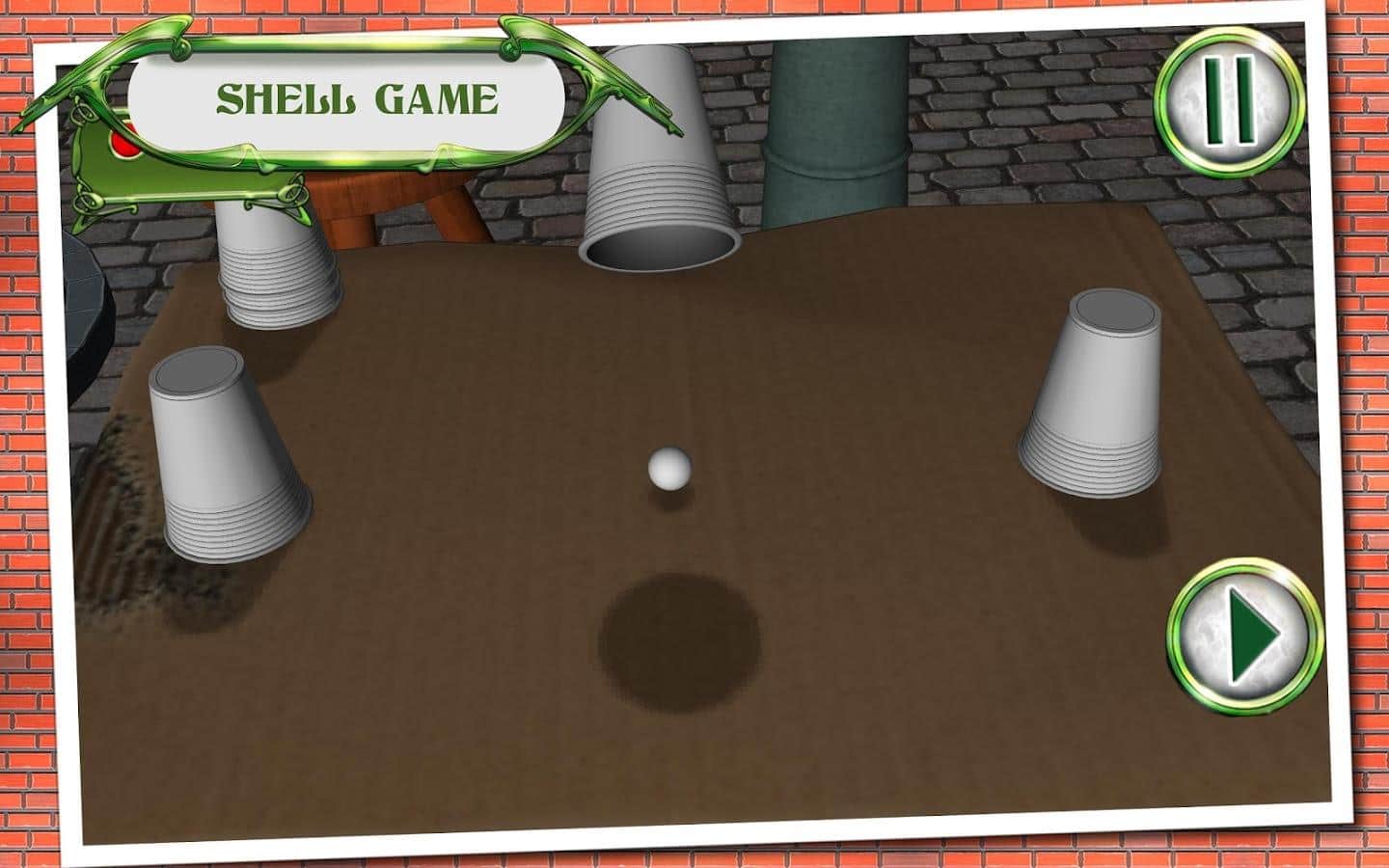 Shell Game - игра наперстки на андроид, в которой вам изрядно предстоит потренировать свои глаза. В эту игру в основном люди играют на улице и на деньги, но теперь у вас выпал шанс сыграть в эту увлекательную игру и определить, в каком из наперстков находиться шарик. Цель игры заключается в следующем, на стол выставляются три или более стаканчиков, в один из них кладется шарик и стаканчики начинают перемещать, запутывая вас. Вашей задачей после всех манипуляций, угадать в каком из стаканчиков находится заветный шарик. С помощью этой игры вы сможете потренировать свои глаза и правильно угадывать стаканчик.