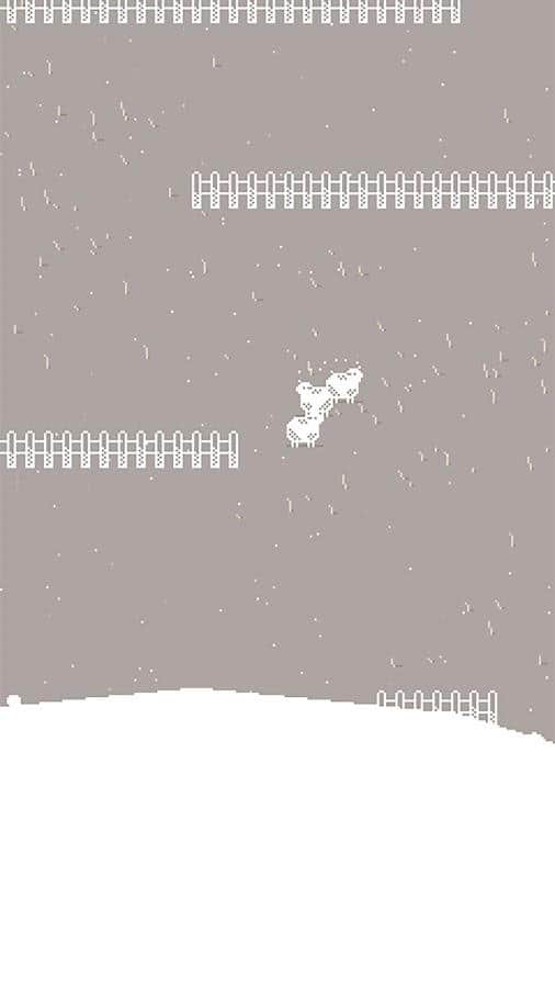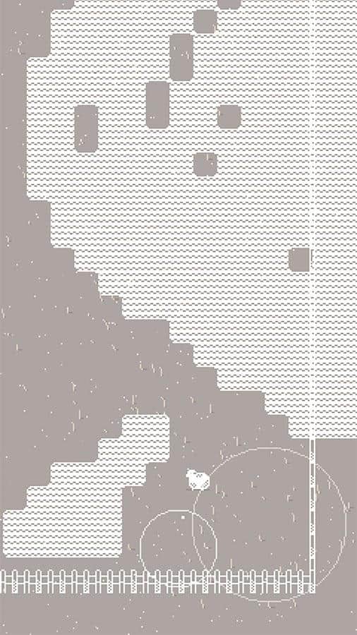 Графика приятная, очень простая, все состоит из всего двух цветов и пикселей, но при этом не полностью минималистичная за счет травы и разных частиц, которые заполняют пустое пространство практически не бросаясь в глаза.