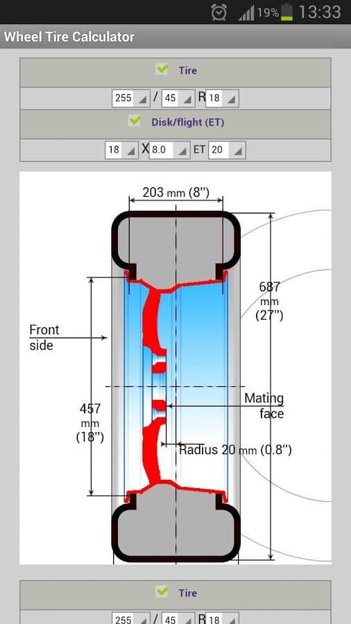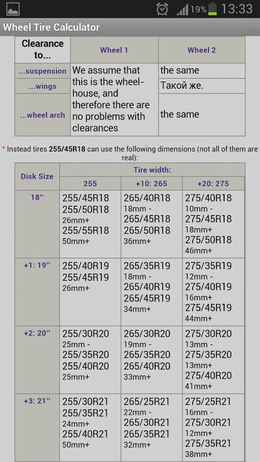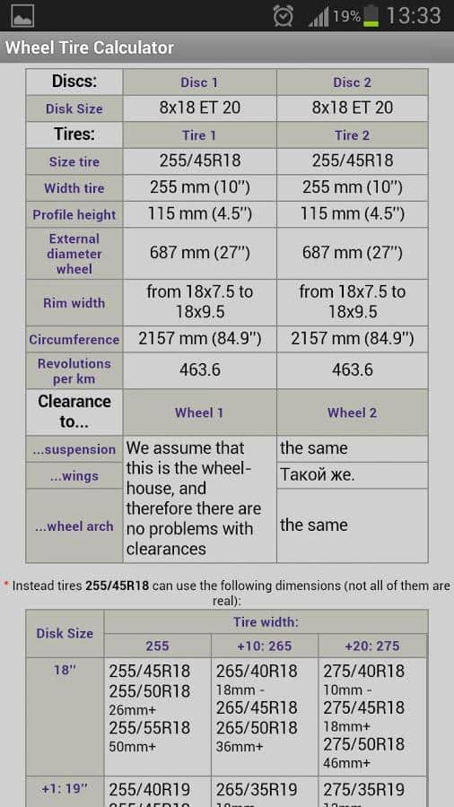 Шинный калькулятор - программа для андроид, с помощью которой вы легко сможете подобрать себе новую резину для авто без особых проблем и с наименьшей тратой времени! Приложение дает понять об изменениях параметров колес при их замене (например, клиренс или показания спидометра), однако точным инструментом не является. В арсенале имеется справочник параметров шин и дисков, установленных на авто с завода. Кроме того, программа имеет удобный, приятный и простой интерфейс, так что пользоваться - одно удовольствие!