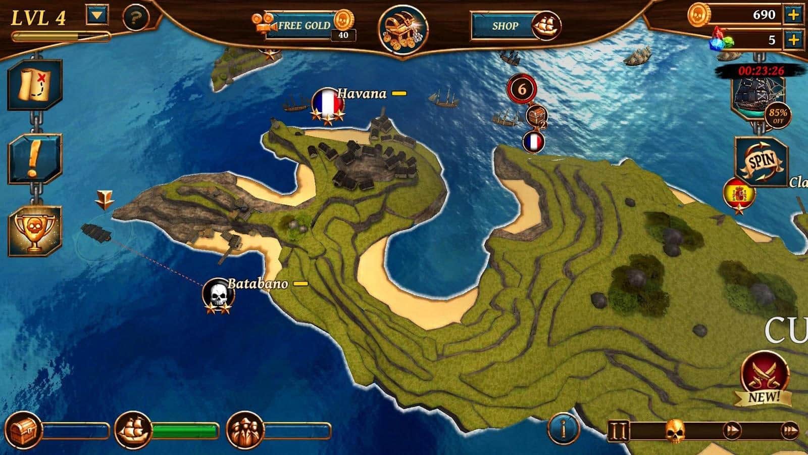 Ships of Battle Age of Pirates – стратегия на андроид, которая перенесет вас в 18 век, где вы будете управлять парусным кораблем. В этой игре вы станете капитаном пиратского корабля и будете бороздить бескрайние воды Карибского моря, ища приключения и сокровища. Примите свое участие в морских сражениях и побеждайте опытных соперников, становясь самым известным пиратом. Ищите на карте новые неизведанные места и острова и плывите к ним. Обустраивайте свой остров, строя различные здания, улучшая свои корабли и пополняя флот новыми. Вступайте в морские баталии с многочисленными соперниками и пускайте на дно их корабли. Всего в игре представлено более 15 кораблей, и все вы их сможете проверить на деле.