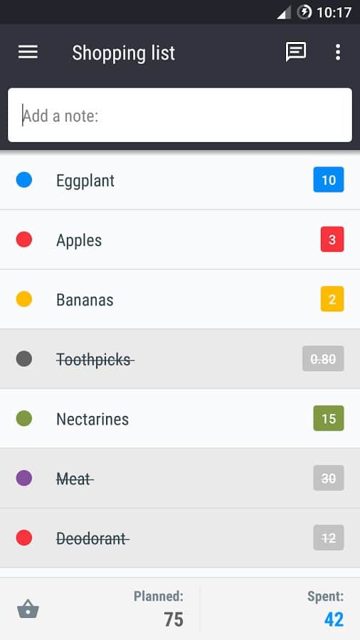 Shopping list - Это самый простой список покупок который только может быть. Ведь многие из нас частенько пишут на бумаге что им нужно купить, а потом теряют её, и забывают что-то важное, в итоге вам приходиться идти в супермаркет снова, и искать то что вы забыли. С этим приложением, все намного проще, вам всего лишь нужно создать свой список, и всего одним касанием вычеркивать те продукты которые вы уже купили, таким образом вы не только сможете запомнить все что нужно, но и легко отсортируете купленную продукцию, от той что ещё предстоит купить.