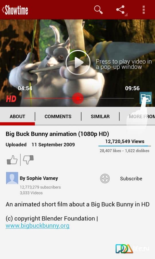 Showtime – отличный клиент для Youtube с большим количеством функций для андроид от разработчика Mata. Смотрите понравившееся видео в сплывающих окнах, размер которых можно настроить под себя от 144p до 1080p. Быстро, качественно, удобно. Приятного просмотра.