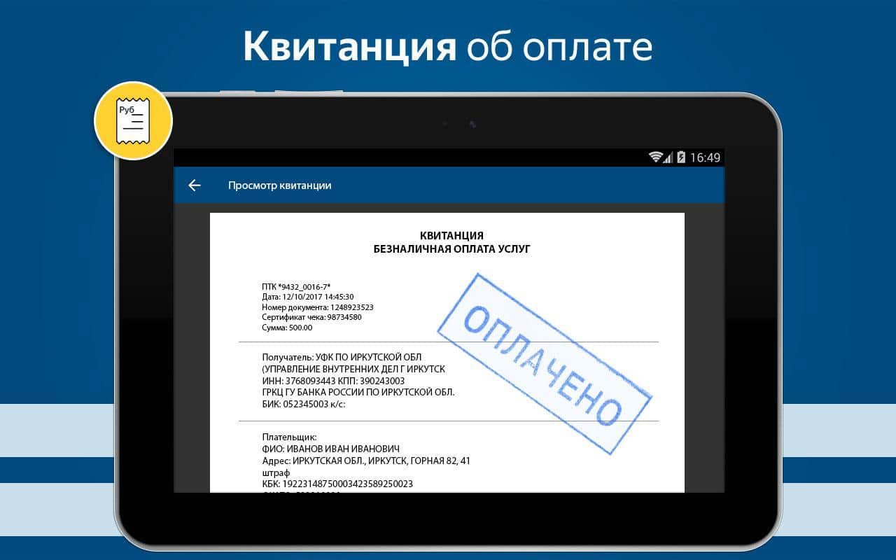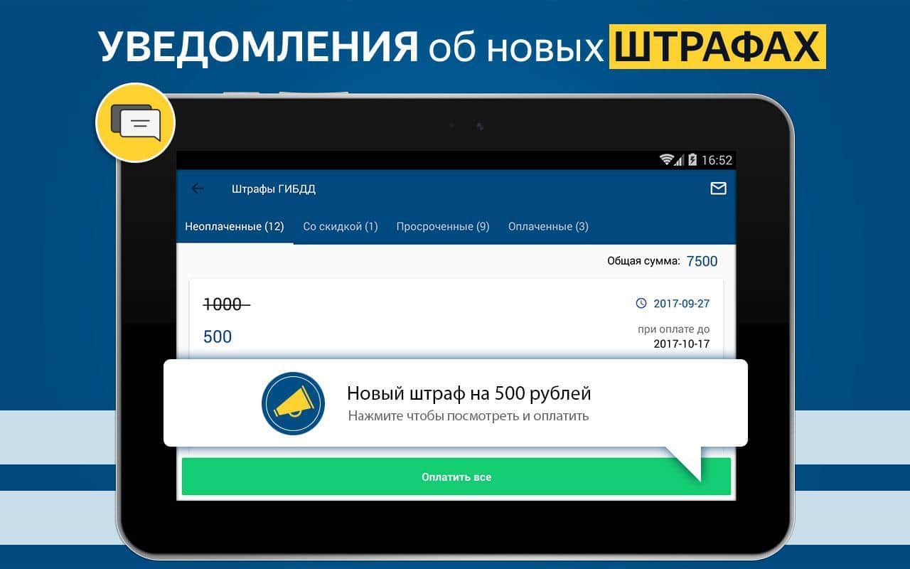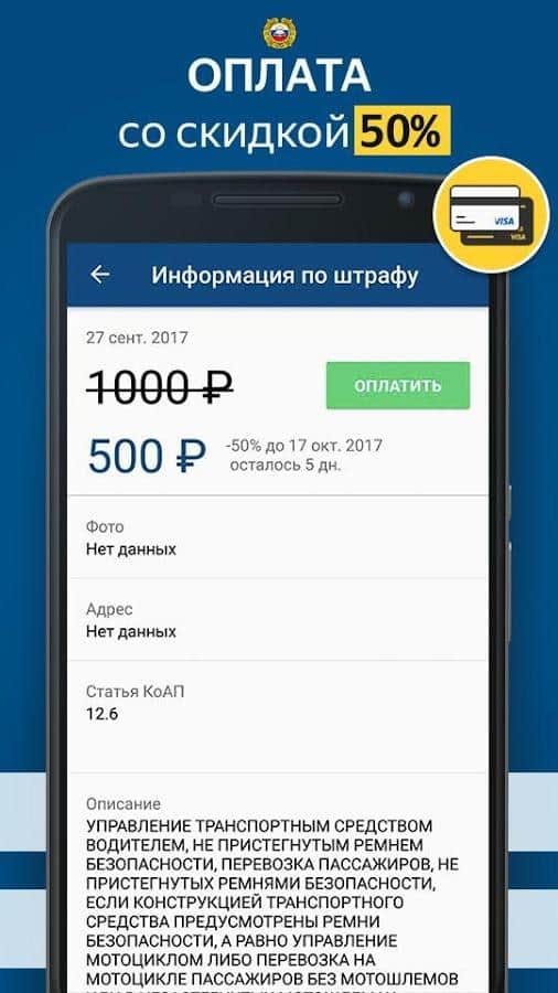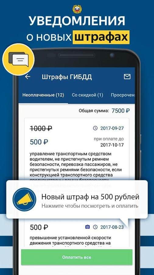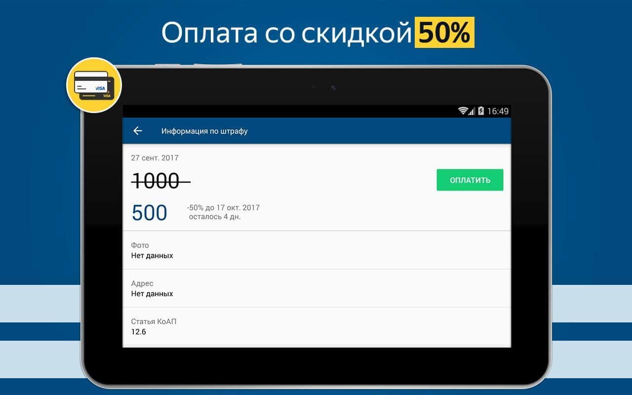 - Возможность быстро погасить существующий штраф в режиме реального времени;