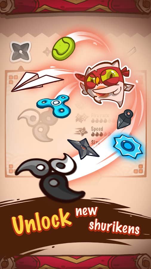 Shuriken Master! – динамичная аркада на андроид, где вы будете помогать главному герою отбиться от злой еды. Наш герой по имени Тофо владеет небольшой лавкой с едой. Однажды темные силы превратили всю еду в его лавке в опасных монстров, теперь вашей задачей будет уничтожить всю еду, применяя свои способности ниндзя. Бросайте в еду многочисленные сюрикэны и не позволяйте ей приблизиться к вашему герою. Положитесь на свою ловкость пальцев и меткость, и уничтожайте всю еду на многочисленных уровнях игры, применяя различные виды сюрикэнов.