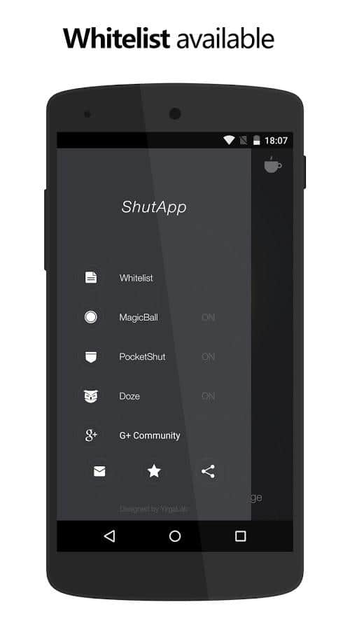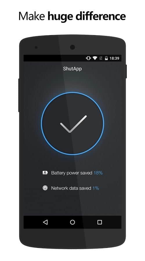 Большинство программ, связанных с увеличением времени автономной работы требуют наличия прав суперпользователя. У ShutApp другой подход к проблеме. Работает она только с загруженным приложениями, но и работая в этой небольшой сфере может продлить автономную работу вашего гаджета. Итак, все возможные приложения закрываются в одно касание и не перезапускаются после этого. Если телефон не используется, доступ к интернету получат только те, которые были предварительно занесены в специальный “белый" список. К слову, такое закрытие приложений сэкономит не только ваш заряд батареи, но и трафик.