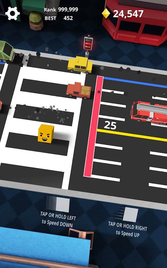 Shuttle Run - Cross the Street – управляйте кубическим героем и помогите ему избежать гибели под колесами автомобиля. В этой игре вы будете управлять кубиком и помогать ему передвигаться по пешеходному переходу при этом избегать аварийных ситуации и столкновений с едущими машинами. Перемещайтесь как можно быстрее туда и обратно и, а также замедляйте свое движение в нужных ситуациях. Будьте предельно осторожны и внимательны, ведь некоторые машины тоже обладают некоторыми свойствами изменять направление своего движения или увеличивать скорость. Выполняйте неожиданные маневры и добивайтесь отличных результатов в этой игре.
