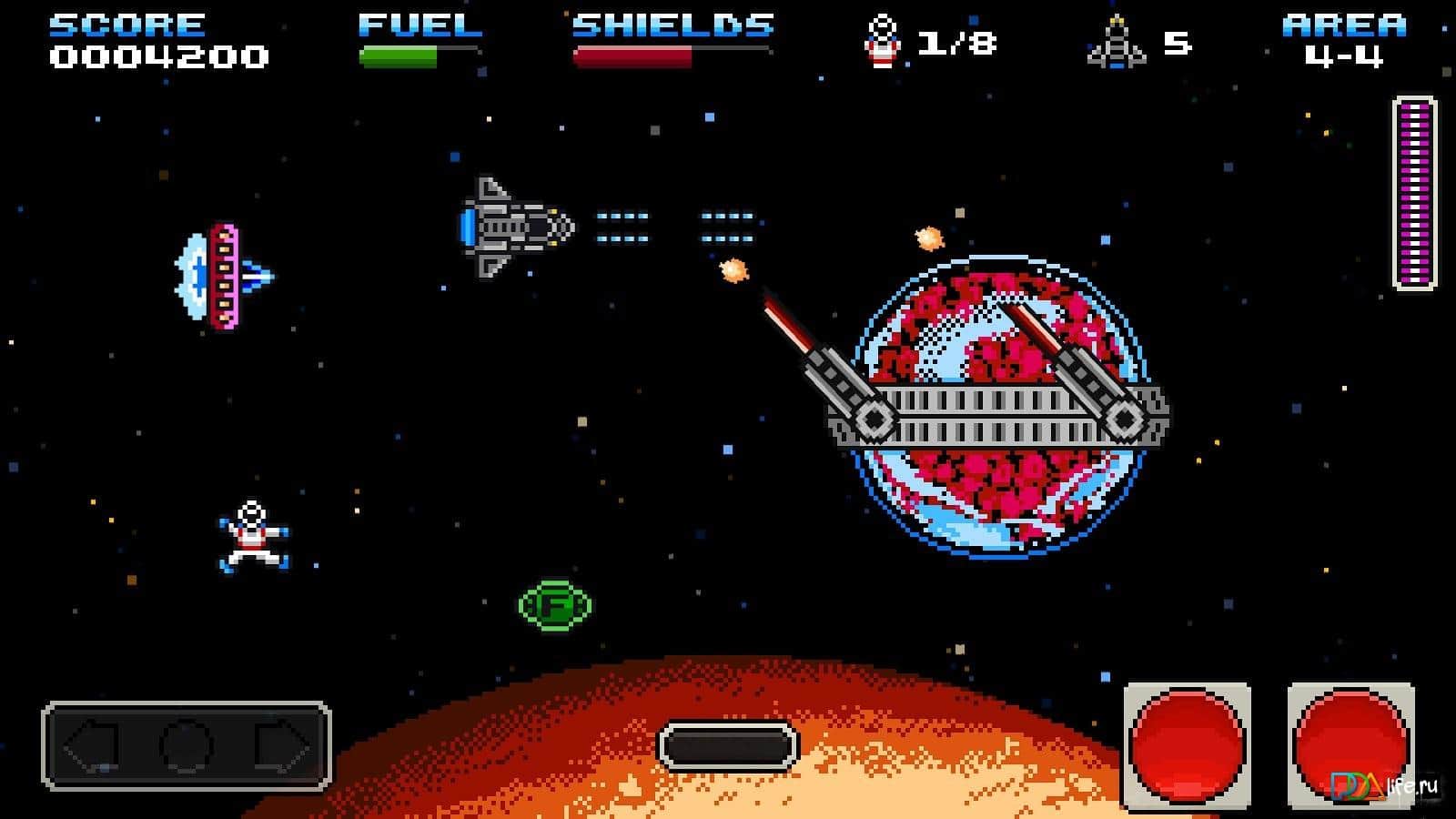 Shuttle Scuttle - Простенькая аркада на андроид, которая оформлена в стиле восьми битных приставок прошлого столетия. Вас ждет 32 футуристических уровня, бороться с врагами, собирать различные бонусы и спасать астронавтов. В игре вам встретятся 8 боссов. Каждый из них имеет свое оружие и спецификацию. Музыкальное оформление состоит из 14 приятных треков.