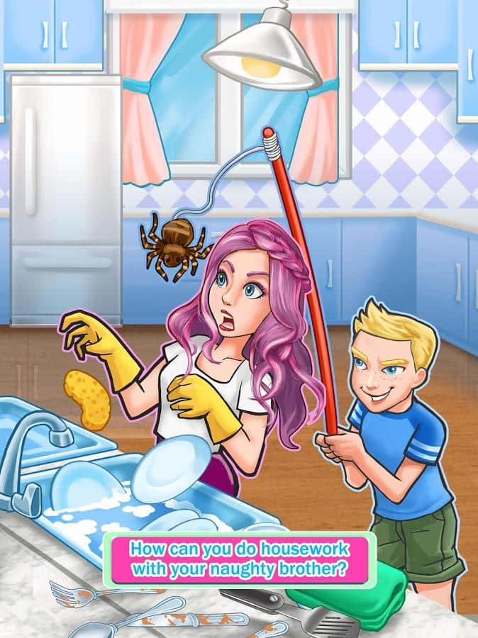 Siblings War - Cleaning Day - довольно оригинальная игра которая расскажет вам о жизни молодой девушки и ее младшего брата. Как это часто бывает мальчишка оказался на редкость не спокойным, да к тому же настоящим хулиганом, который только и думает как бы насолить сестре, при этом не брезгует использовать по настоящему коварные приемы. В целом игровой процесс представляет из себя настоящее семейное противостояние, полное черного юмора, решения простеньких головоломок, элементов симулятора и даже мини - игры в стиле уход за питомцем. Все это выполнено в отличном графическом решении, с яркой анимацией и проработанными деталями. Так что если у вас есть несколько часов свободного времени и желание по хулиганить, то Siblings War - Cleaning Day игра как раз для вас.