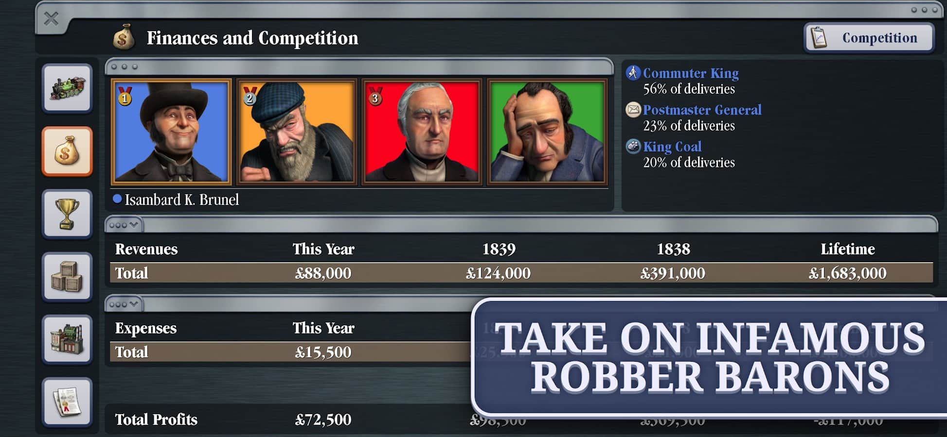 Игра классная и залипательная. И реиграбельная. С интересными механиками. Кроме, собственно, затягивающего строительства железных дорог, логистики и менеджмента поездов, есть интересные моменты, как патенты, аукционы. Купить или построить недвижимость под свои дороги, которая может приносит доход или наоборот. Конкуренты могут купить ваши акции и вы проиграли. Или вы их полностью купите. Интересная комплексная система.