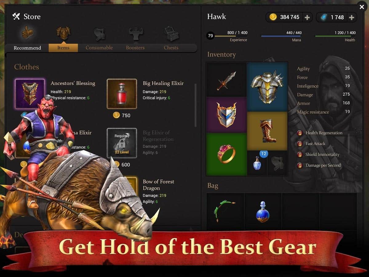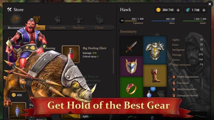 • Разнообразное снаряжение улучшающее характеристики