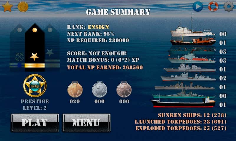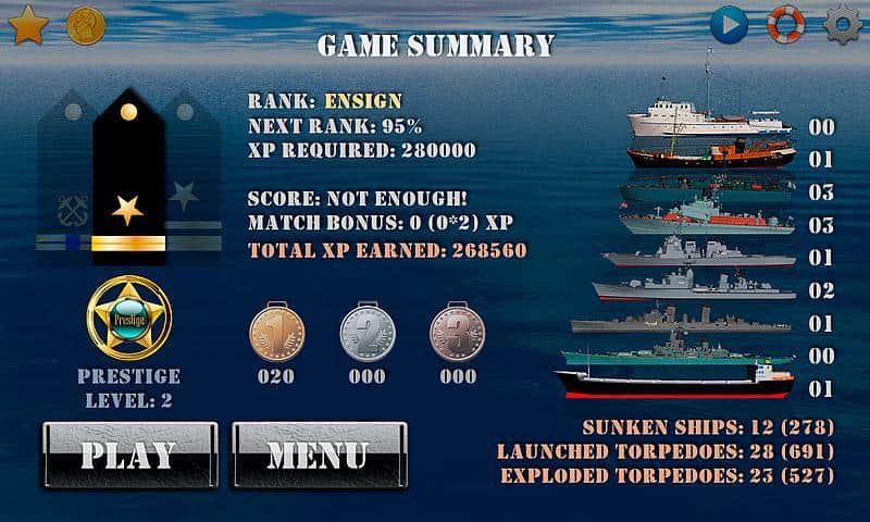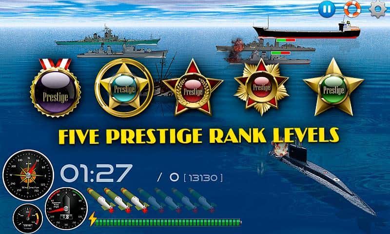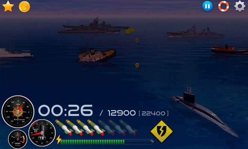 Silent Submarine Career - это морской бой для андроид! Интерактивный, аркадный, с отличной графикой и музыкальным сопровождением! Вам предстоит руководить подводной лодкой, которая патрулирует родные берега. В вашем распоряжении полный боекомплект, готовый сию секунду поразить цель. В игре есть режим одиночка и карьера, в котором вы сможете получить 12 военно-морских званий! Кроме того, порадуйте себя и друзей топовым местом в Топ лучших игроков. 10 разного типа военных корабля, 3 вида погодных условий, советы и возможность отключить анимацию и музыку (для слабых девайсов), а также интеллектуальная система контроля загрузки позволит получить неимоверное удовольствие от игры! Топите вражеские корабли без сожаления и защитите морскую линию вверенной вам территории!