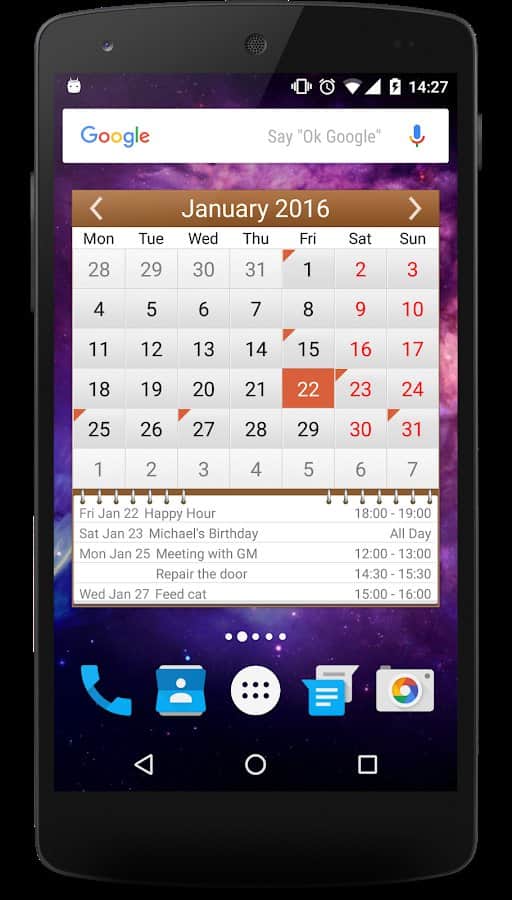 В современном мире время летит очень быстро. Составляя огромные списки дел на месяц, легко забыть о текущей дате или пропустить одно из важных событий, имеющее значение лично для вас. Simple Calendar поможет вам распланировать дела на месяцы вперед и напомнит о праздниках. Приложение сделано просто и удобно, интерфейс интуитивно понятный. Даты, для которых есть какие-либо события, отмечаются маркерами. Ежедневник поможет вам быстро оставлять заметки и возращаться к ним в любой удобный для вас момент.