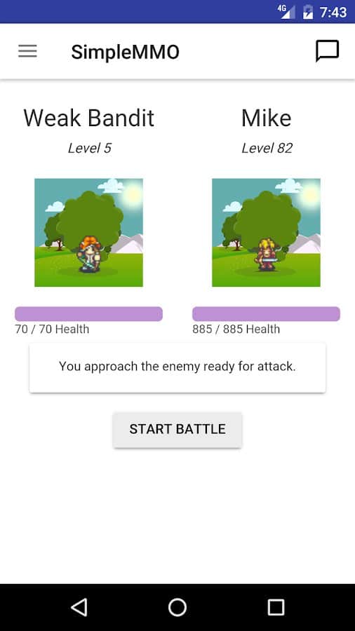 SimpleMMO - The Lightweight MMO – многопользовательская пошаговая ролевая игра на андроид, где вы будете прокачивать своего героя. Начните свое приключение прямо сейчас и добейтесь отличных результатов в этой простой, но увлекательной игре. Бросайте вызов реальным игрокам со всего мира и сражайтесь на арене, выявляя кто самый лучший игрок. Путешествуйте по фантастическому миру и прокачивайте своего героя, делая его более сильным и выносливым. Найдите много денег на своем пути и выполняйте все задания и проходите опасные миссии. Общайтесь в общем чате с игроками и весело проводите свое свободное время.