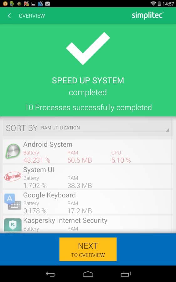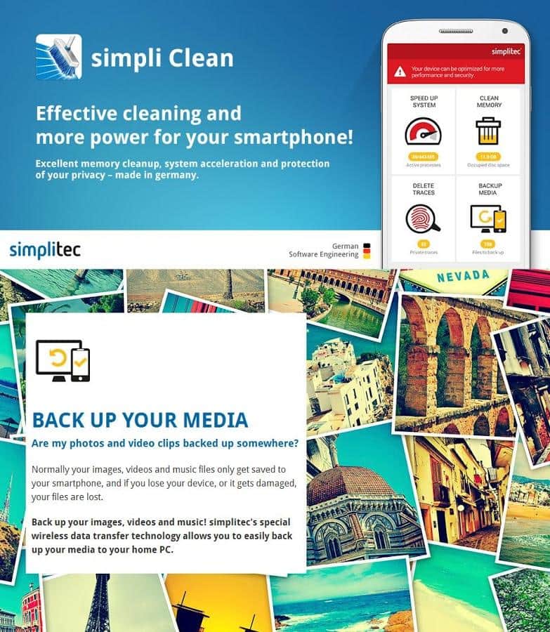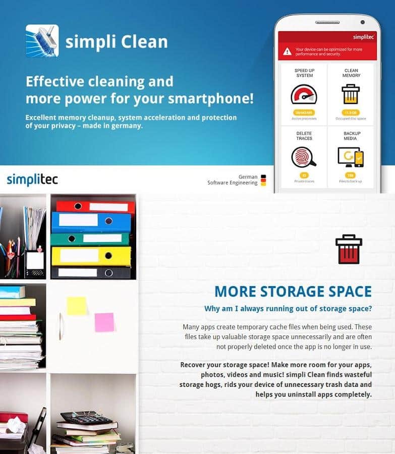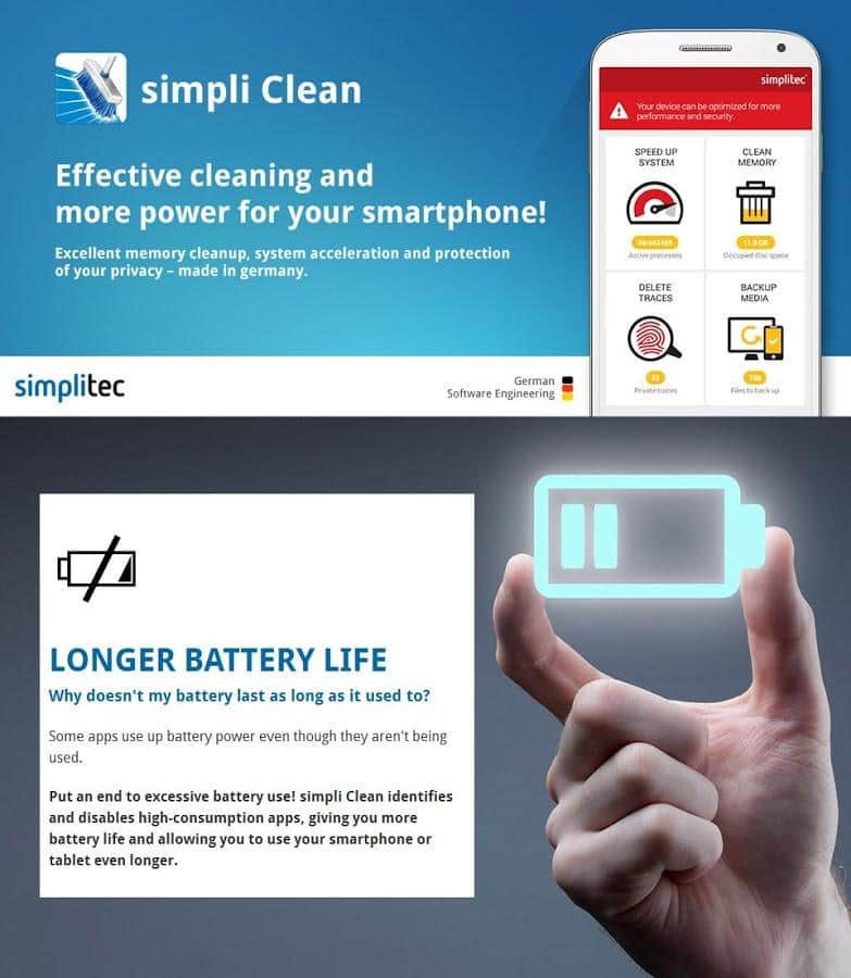 simpli Clean (Speed Booster) - Держите свой смартфон в чистоте, с помощью всего одного простого приложения. Это многофункциональное приложение не только поможет вам освободить место, но так же и ускорит работу вашего устройства. С помощью функции оптимизации, вы всего в одно нажатие сможете ускорить работу одного приложения с помощью оптимизации других. А в добавок ко всему этому, вы так же сохраните заряд своей батареи, ведь здесь есть даже эта функция. Путем отключения не нужных фоновых процессов, вы оптимизируете работу батареи.
