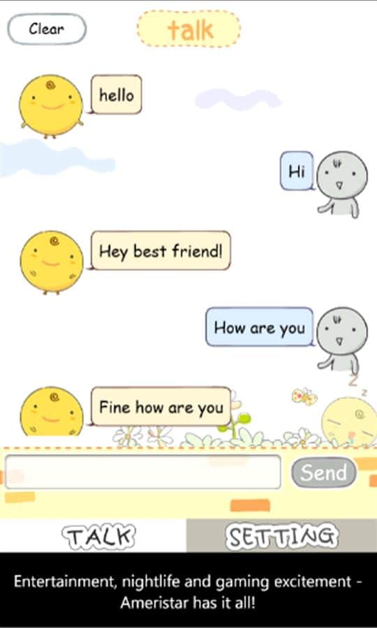 SimSimi - приложение для windows phone, передовой чат c роботом, с которым вы можете вести беседу. Это приложение очень простое в использовании, просто начните беседу и ваш робот колобок будет вам отвечать. Чем больше вы будете с ним вести переписку тем больше будет у него словарный запас, постепенно он будет общаться наравне с вами.