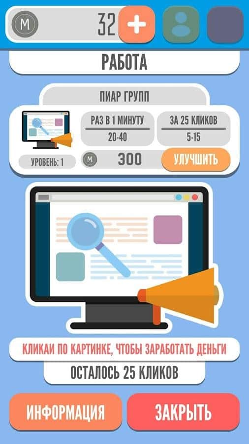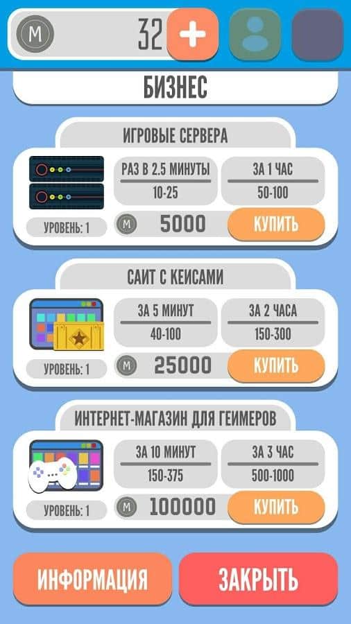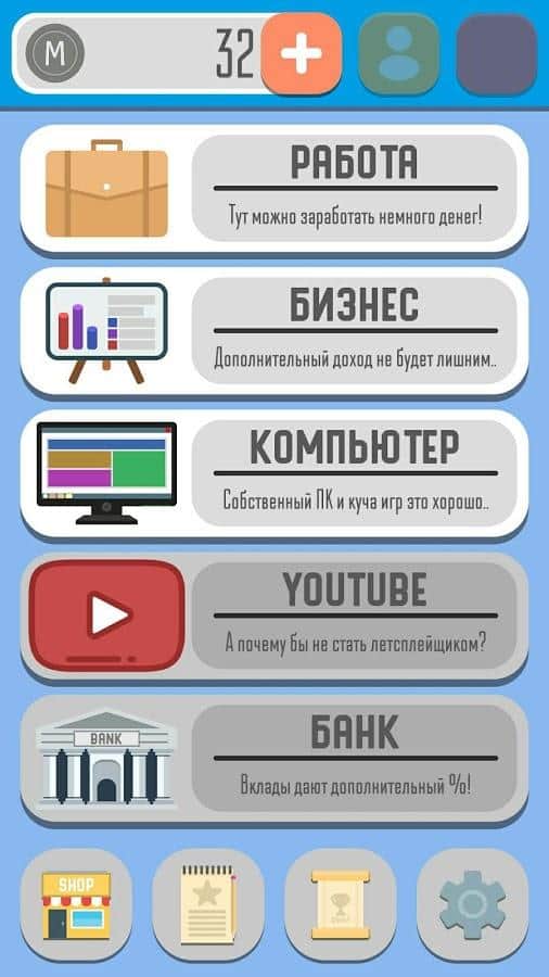 Симулятор игромана 3 – если вы любите кликеры, тогда эта игра вам определённо понравится. Русский язык присутствует, так что будет легко разобраться с настройками и самой игрой. Вы как ярый игроман должны зарабатывать на ваши хотелки. Как говорится «кто не работает тот не ест». Тем более так приятно после рабочего дня прийти и поиграть в спокойной обстановке. В общем жанр вам ясен и понятен, тапайте до посинения прокачивайте себя и ваши компьютер. Следите за своим доходом и тратьте его с умом. Вот собственно и все. Кликайте, зарабатывайте, покупайте!