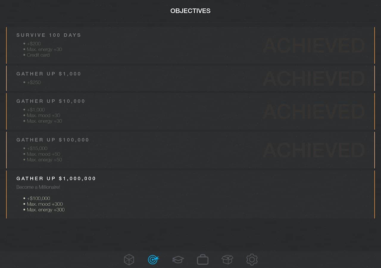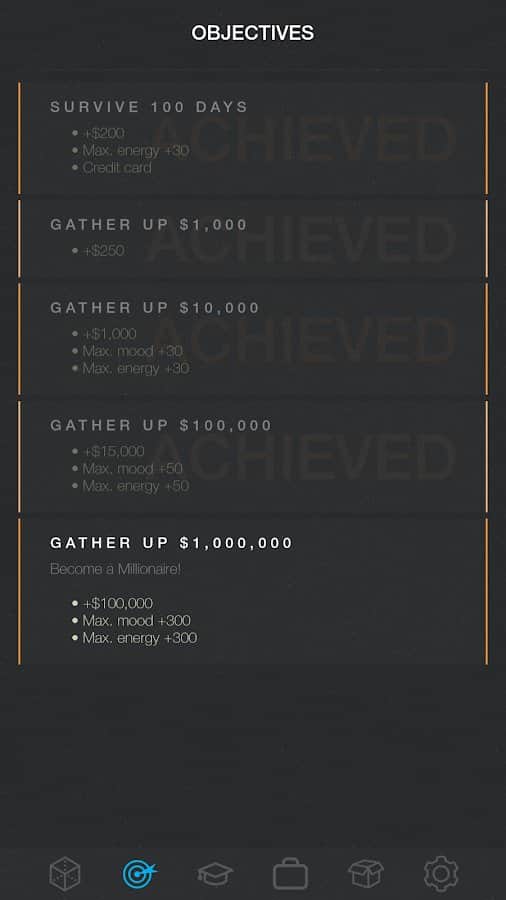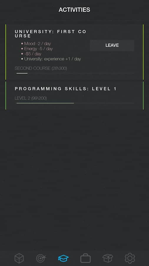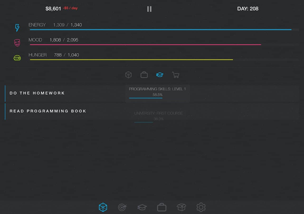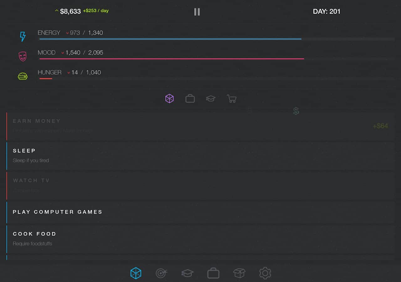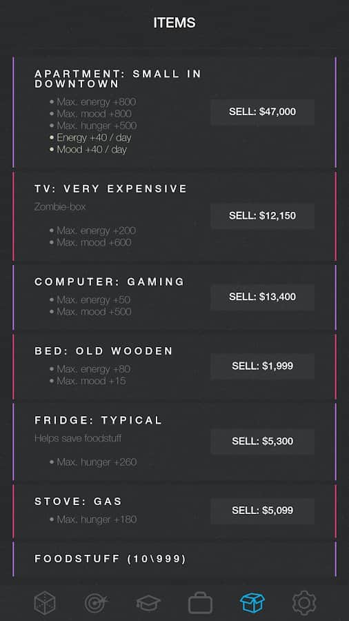 Симулятор жизни 2: Новая жизнь – продолжение текстового симулятора жизни на андроид. В этой игре вы опуститесь на самое дно жизни, из которого вам необходимо выбраться и добиться успеха. Поначалу у вас не будет денег на еду, жилье и одежду. Выполняйте различные действия и миссии и открывайте новые возможности для своего героя. Развивайте и прокачивайте своего персонажа и ставьте себе цели и задачи, а также приобретайте нужные вам предметы и устраивайтесь на работу. Как только вы достигните денежной стабильности, открывайте свой бизнес и занимайтесь тем, чем вам хочется. Постоянно следите за своим здоровьем, настроением и энергией.