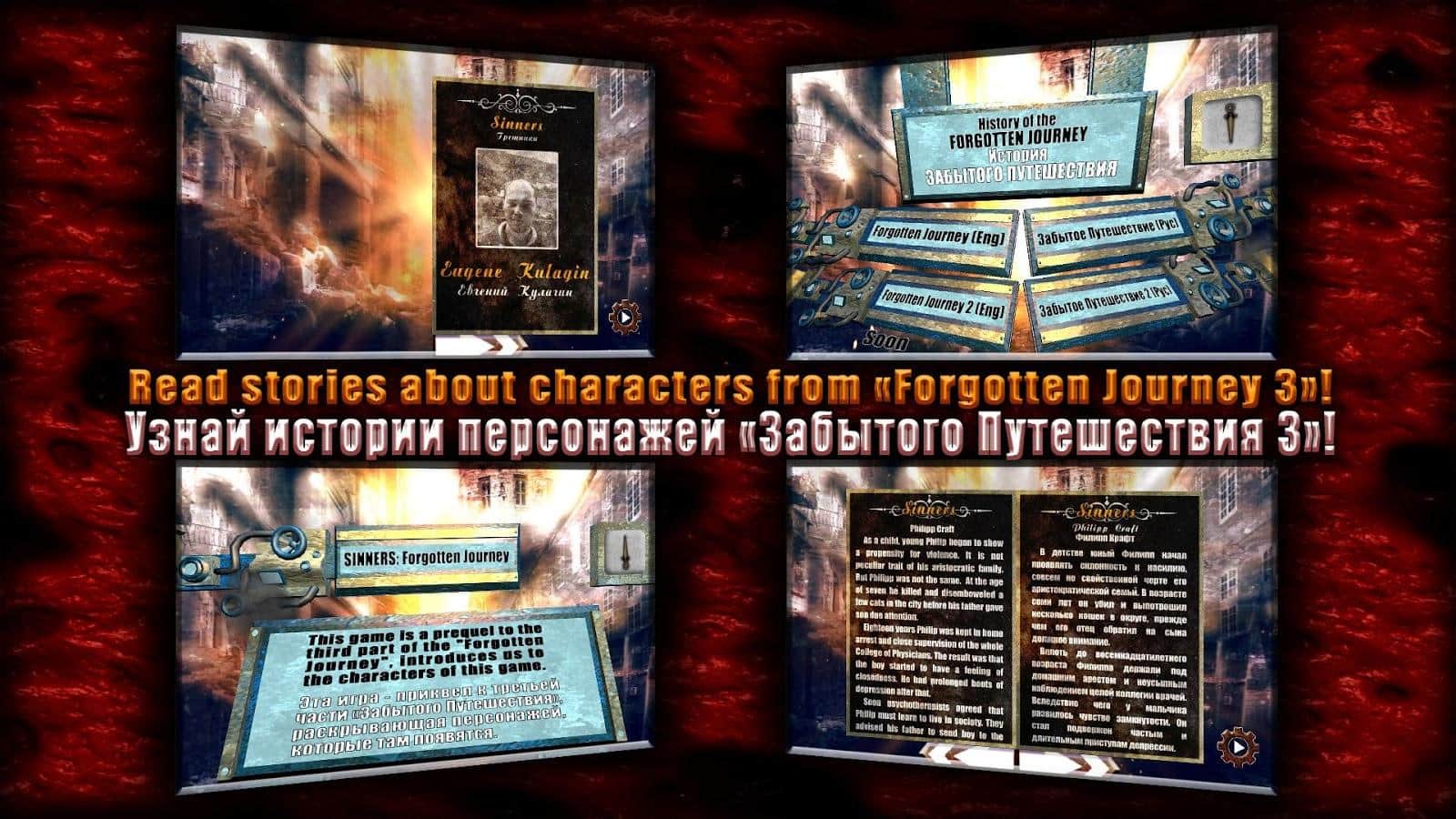Sinners - игра, которая собрала в себе большое количество классических пазлов. Каждый пазл в этой игре рассказывает трагическую историю одного персонажа, о потерянных душах и несчастной судьбе. Составляйте одну картинку за другой и открывайте новые уровни, в которых вы узнаете много интересного о жизни грешников. Игра погрузит вас в атмосферу мрачных времен прошлого столетия и расскажет не одну историю о различных людях и событиях в их жизни.
