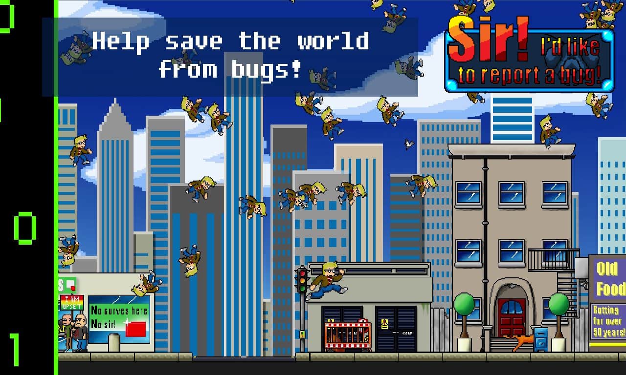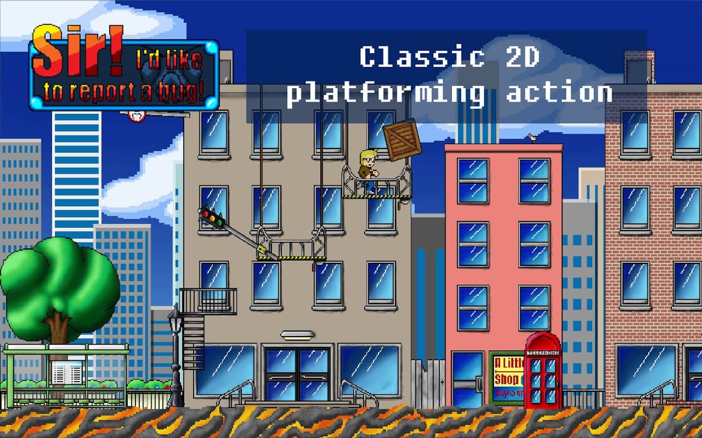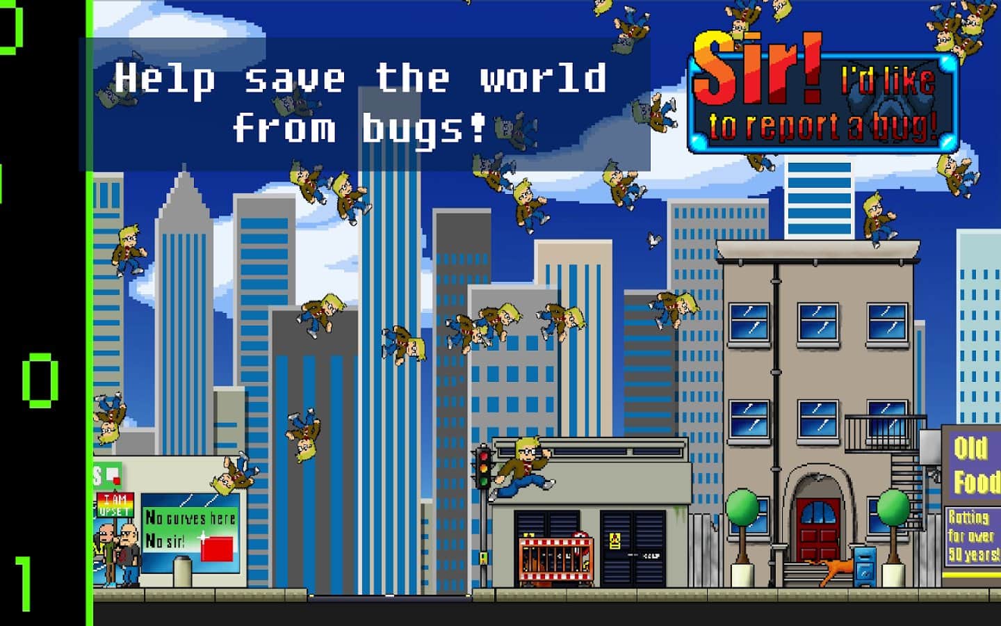 Sir! I'd Like To Report a Bug! - отличный 2D платформер, выполненный в ретро стиле. В игре потрясающий геймплей, приправленный юмором и ностальгией по старым игровым приставкам. Бегаем, прыгаем по разнообразным уровням и не даём себя убить.