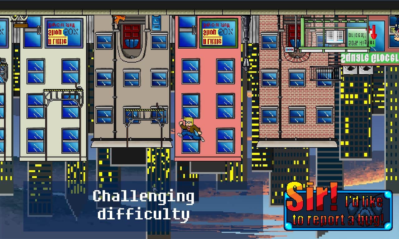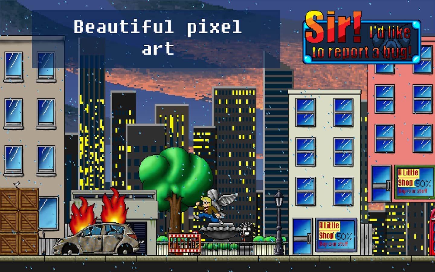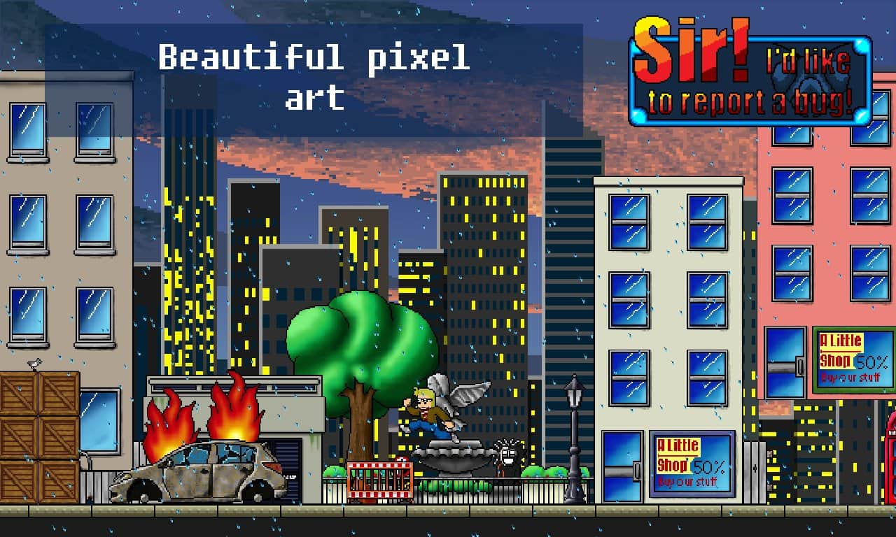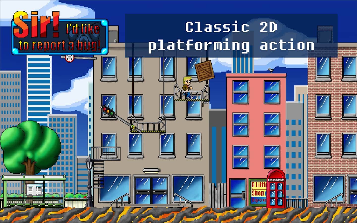 Sir! I'd Like To Report a Bug! - отличный 2D платформер, выполненный в ретро стиле. В игре потрясающий геймплей, приправленный юмором и ностальгией по старым игровым приставкам. Бегаем, прыгаем по разнообразным уровням и не даём себя убить.
