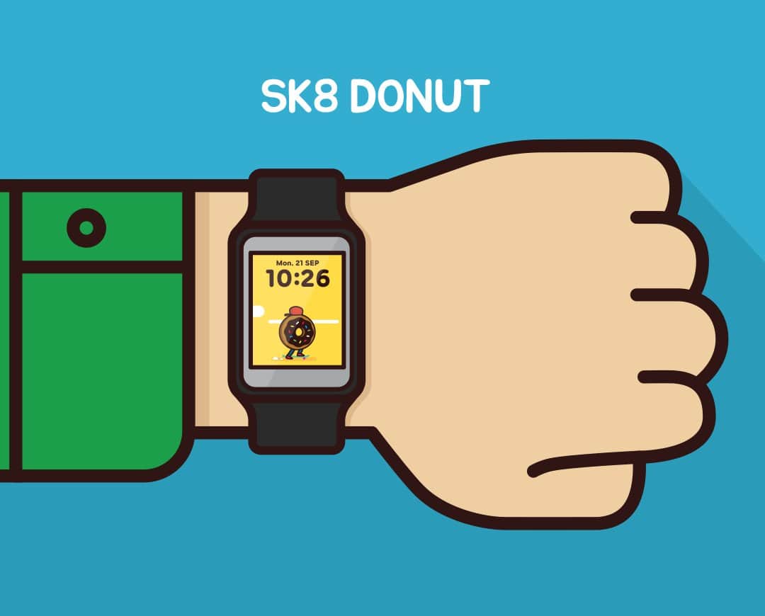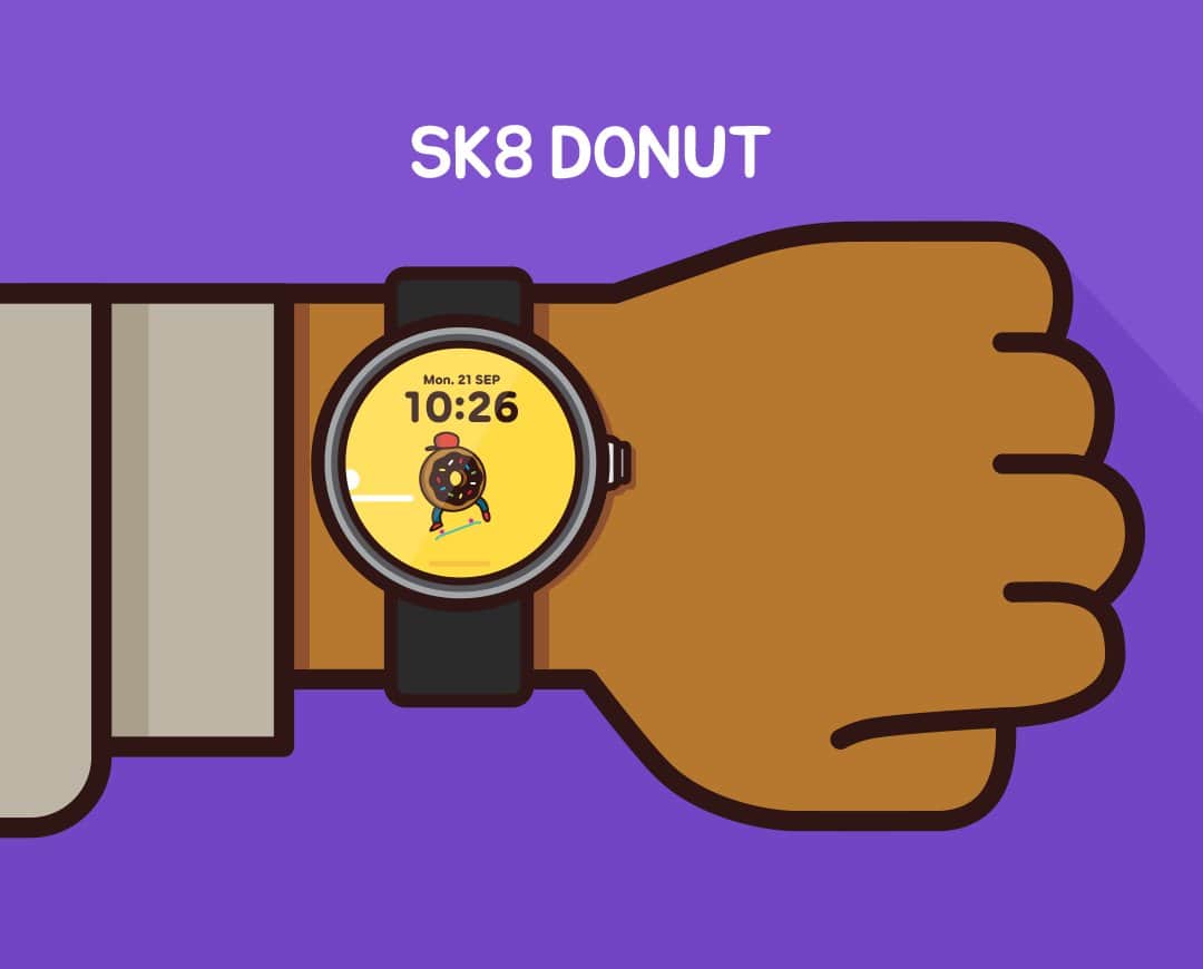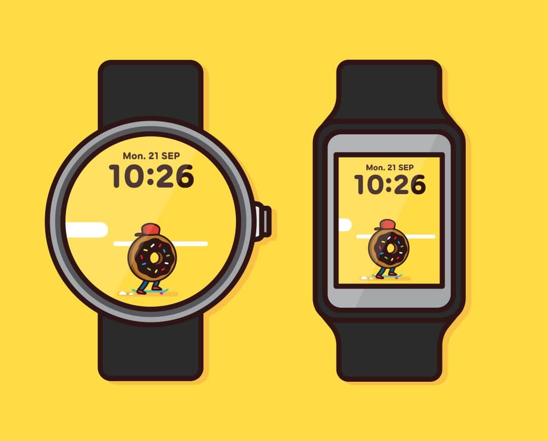 Пончик-скейтер на вашем запястье — это звучит так же абсурдно, как и выглядит. Но не спешите делать выводы об этом циферблате! Благодаря ярко-желтому фону и контрастному жирному шрифту текст на экране читается легко и всмартриваться в цифры не приходится, а значит вам не придется тратить много времени, чтобы узнать, который час. Главное при этом не засмотреться на тот самый пончик, который будет весело рассекать по своим делам.