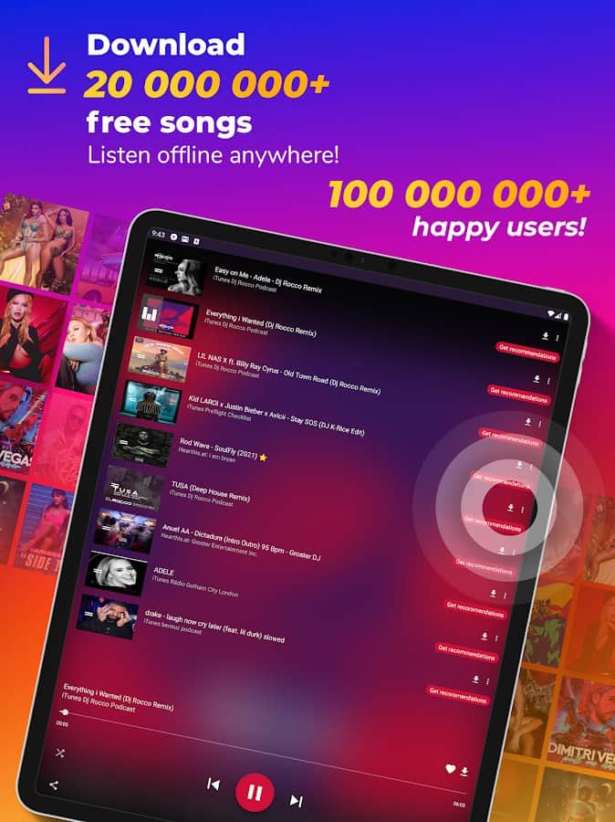 Скачать Музыку MP3 - AT Player - Скачайте самые известные и другие песни, слушайте множество прочих песен с Youtube и слушайте их офлайн везде, где только можете. Никаких ограничений больше нет, вам позволено слушать что угодно и попробовать любые функции. Экспериментируйте над различными функциями и опробуйте эквалайзер, бас буст и офлайн музыку. Прослушивайте музыку в фоновом режиме, используйте больше 50 тем, импортируйте свои плейлисты и распределите любимую музыку по жанрам, категориям, настроению, специальным плейлистам, активности и прочего.